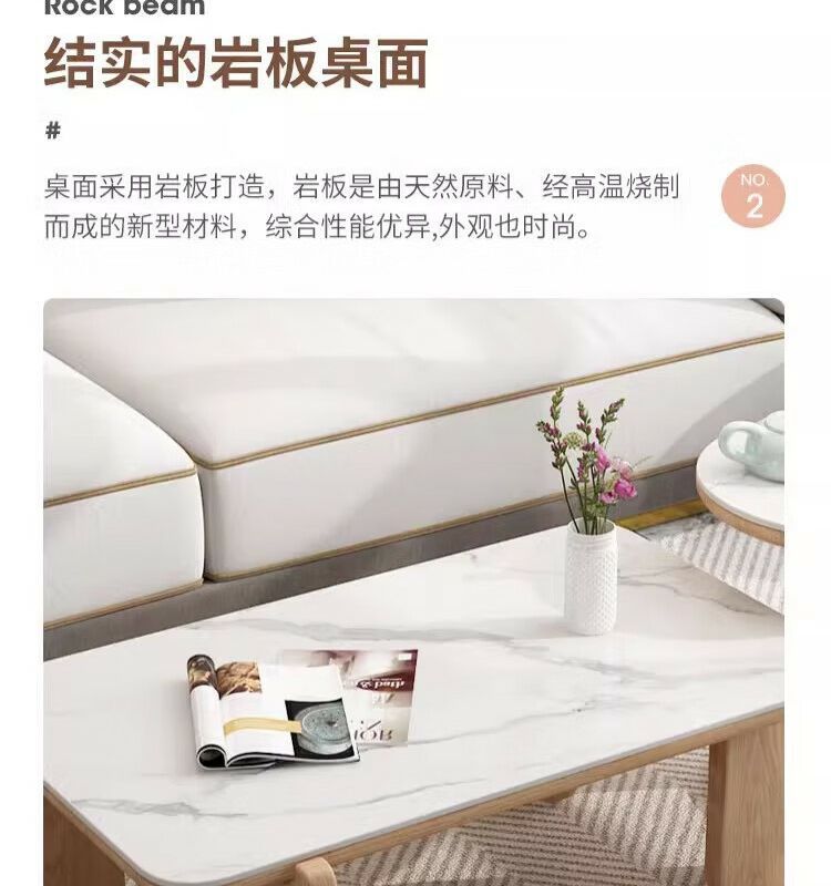 • (오크우드 컬러) 1.2m 직사각형 슬레이트 커피 테이블(아이보리 화이트)