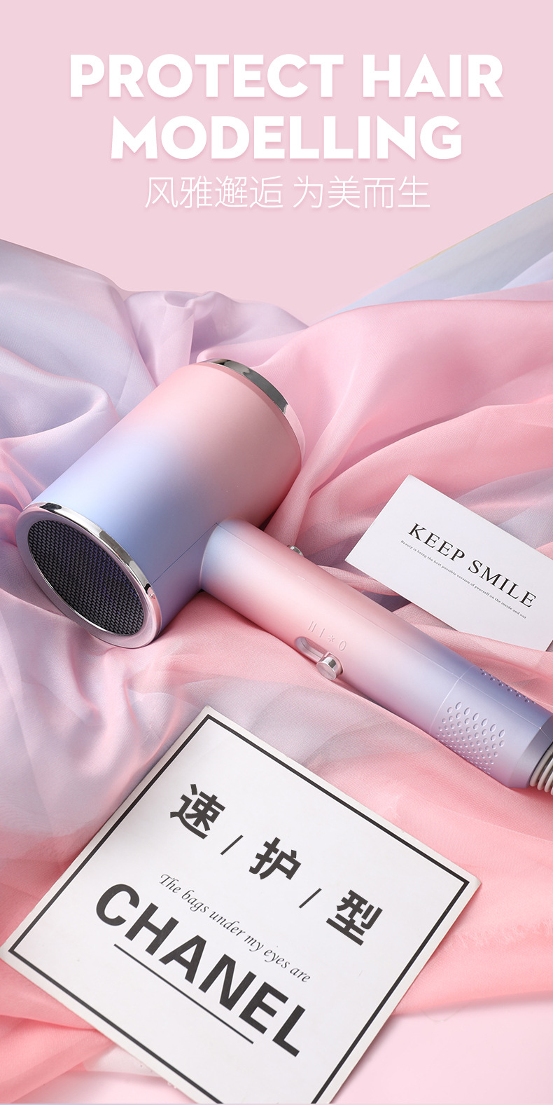 엄선된 휴대용 헤어드라이어, 국경을 넘는 전자제품 헤어드라이어, 가정용, 학생 기숙사, 호텔, 미용실 전용, 강력한 바람의 헤어드라이어