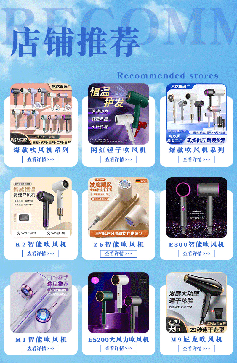 엄선된 휴대용 헤어드라이어, 국경을 넘는 전자제품 헤어드라이어, 가정용, 학생 기숙사, 호텔, 미용실 전용, 강력한 바람의 헤어드라이어스토어 가기