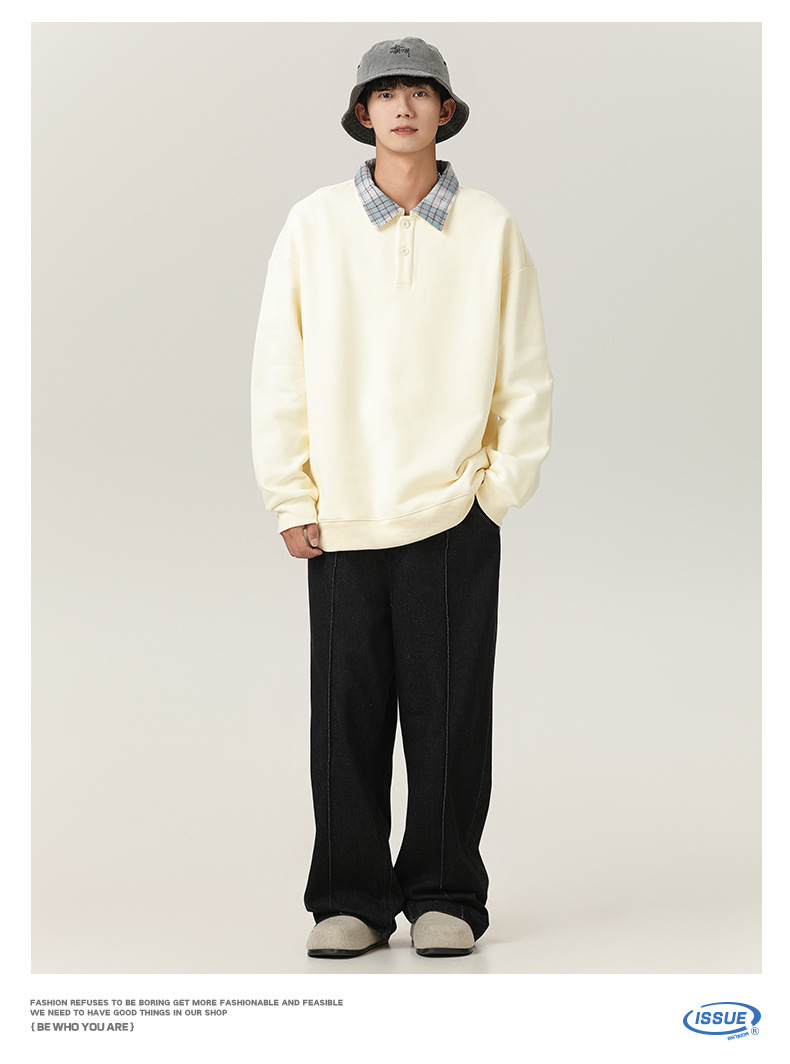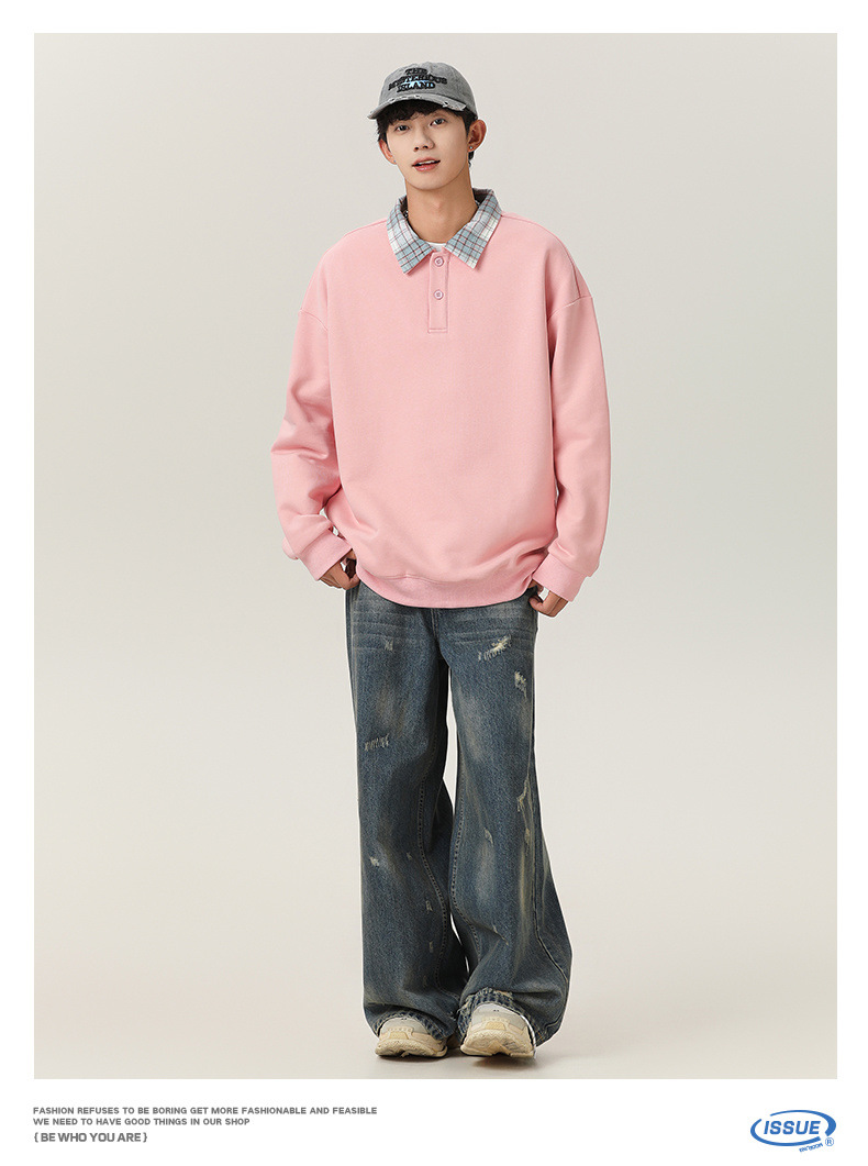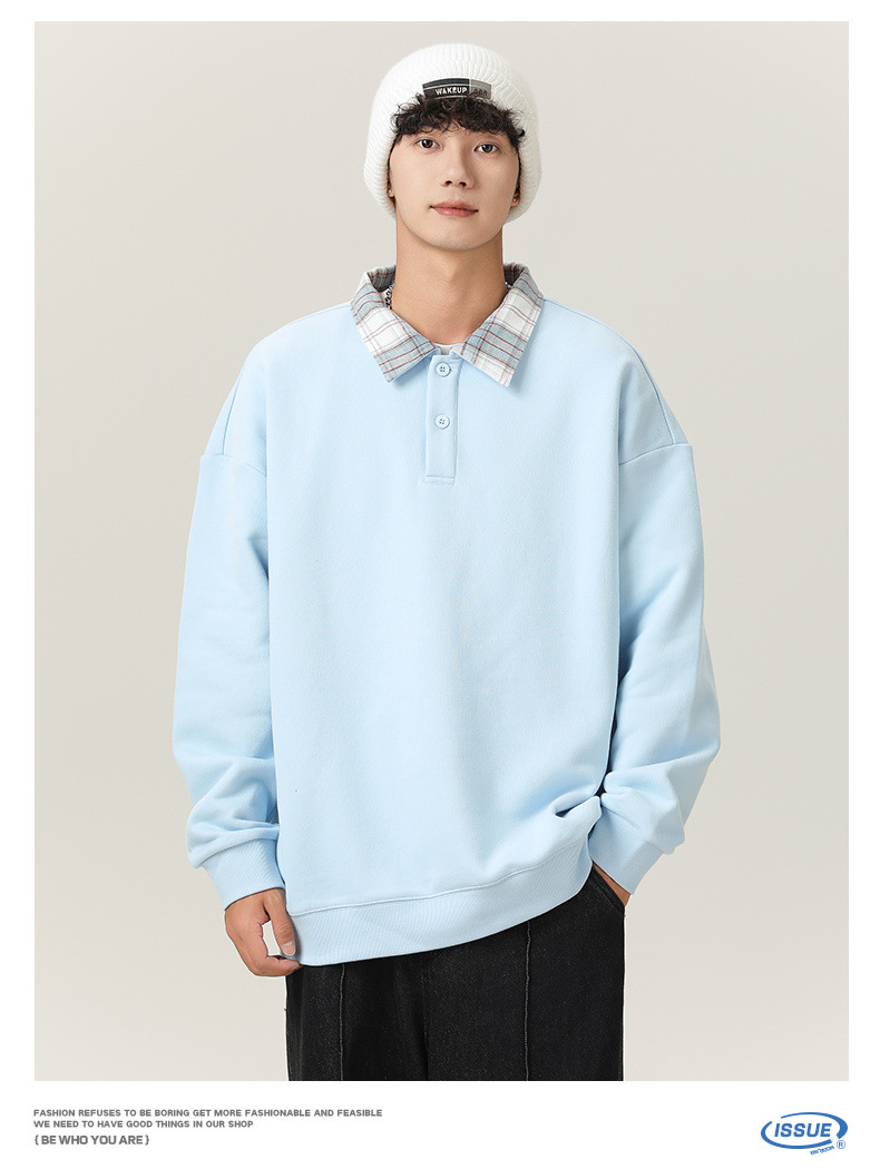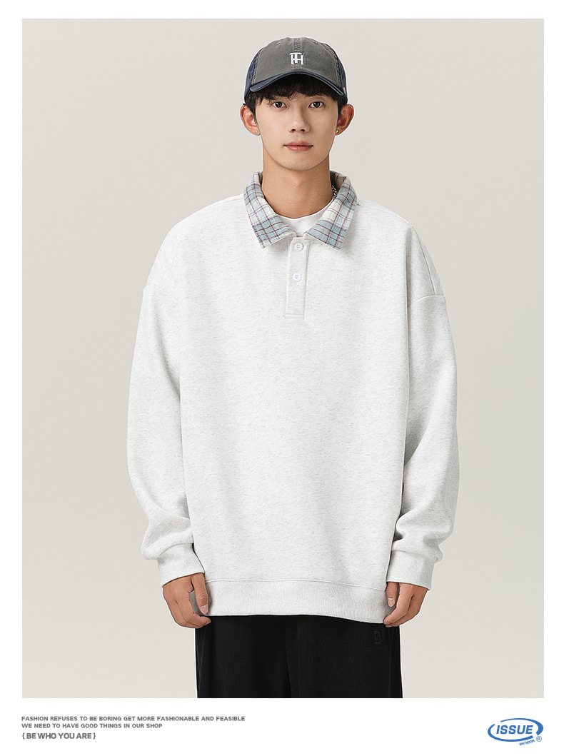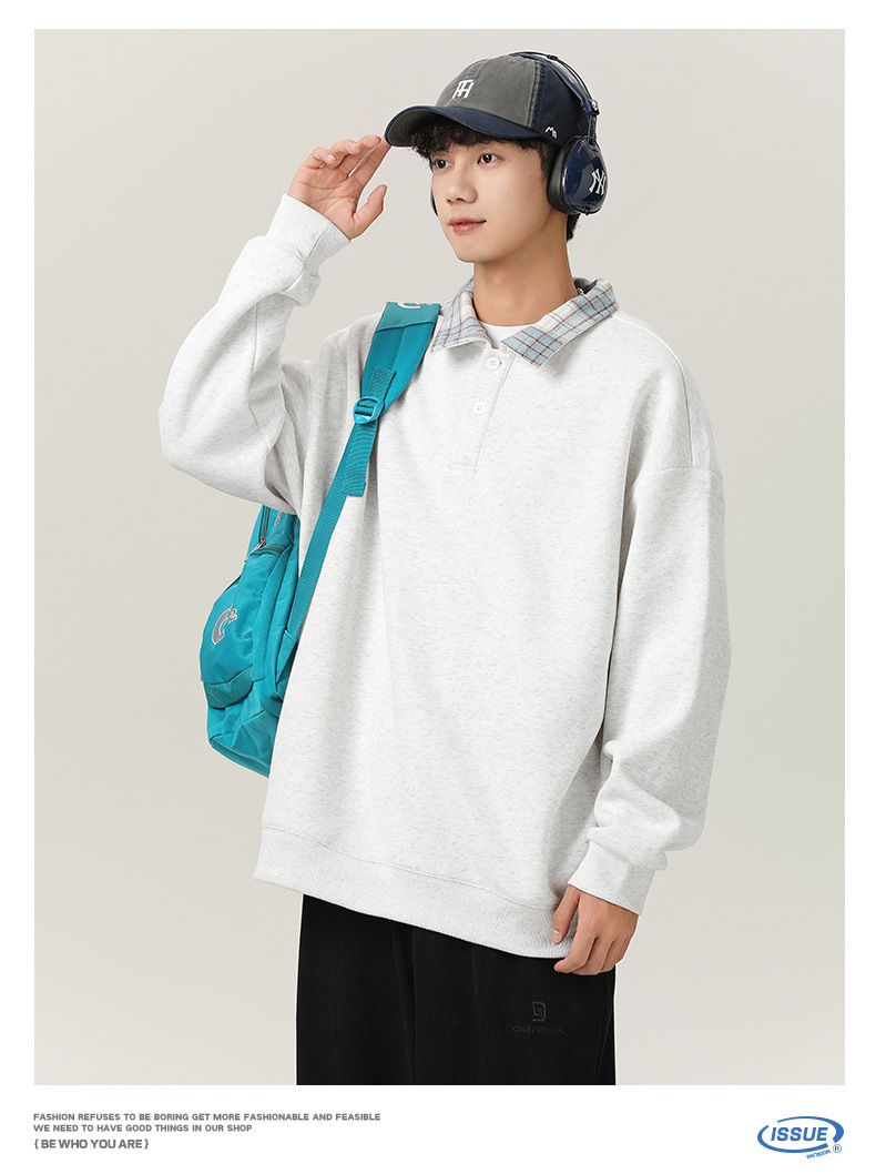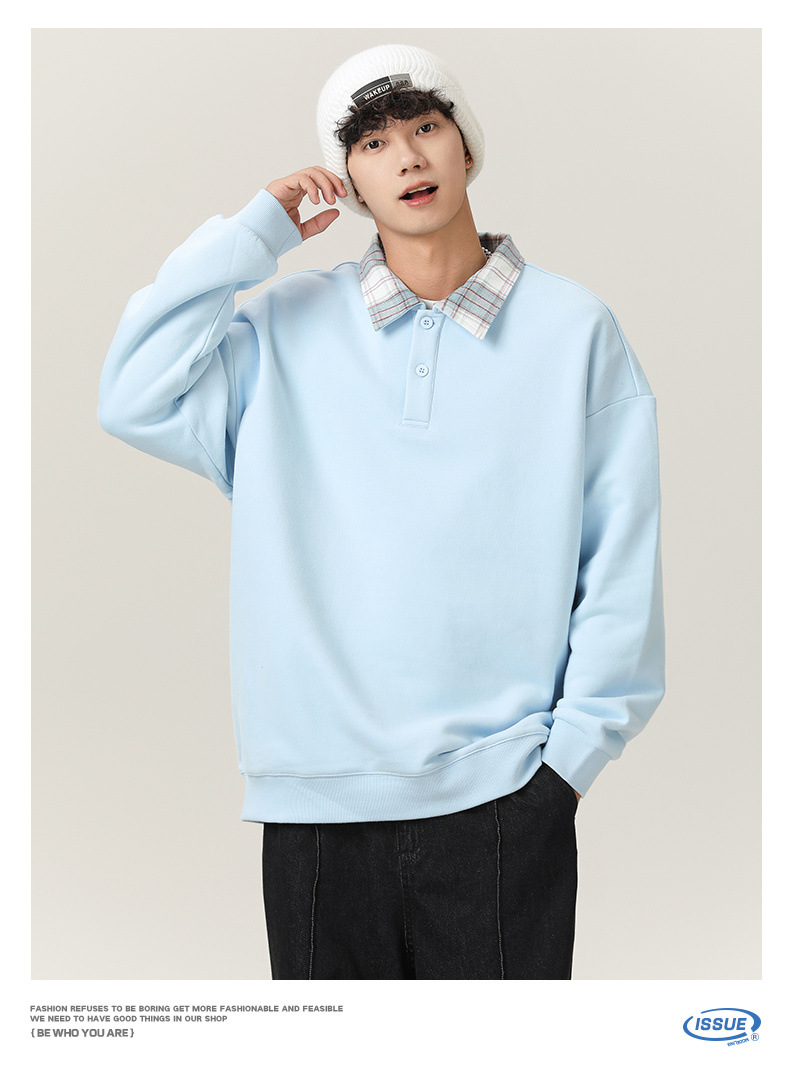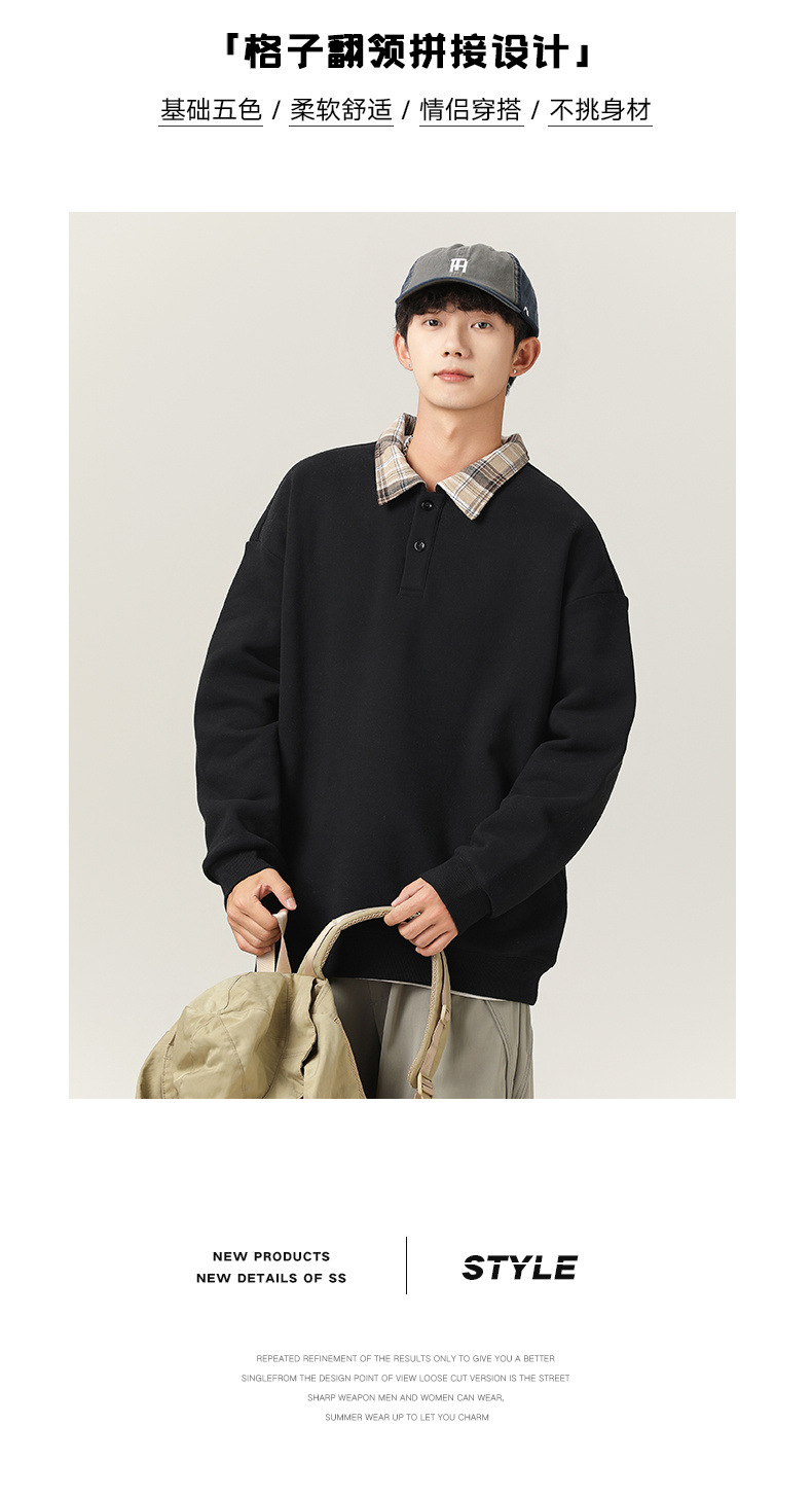 스웨터 남성 2024 새로운 패션 브랜드 남성용 루즈 의류 캐주얼 컬러 매칭 롱 슬리브 티셔츠 POLO 셔츠 남성용 재킷스토어 가기