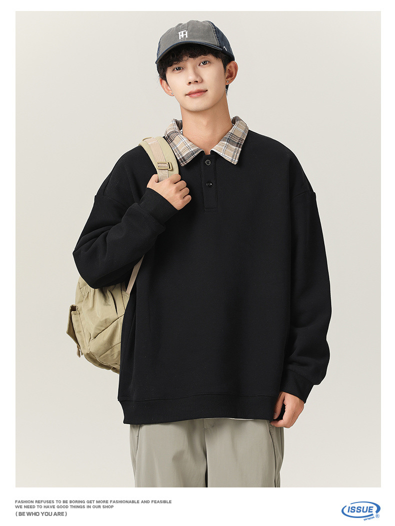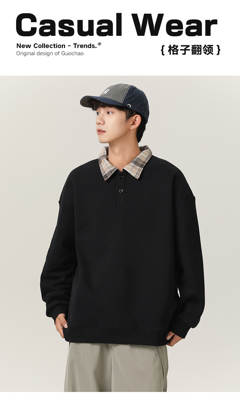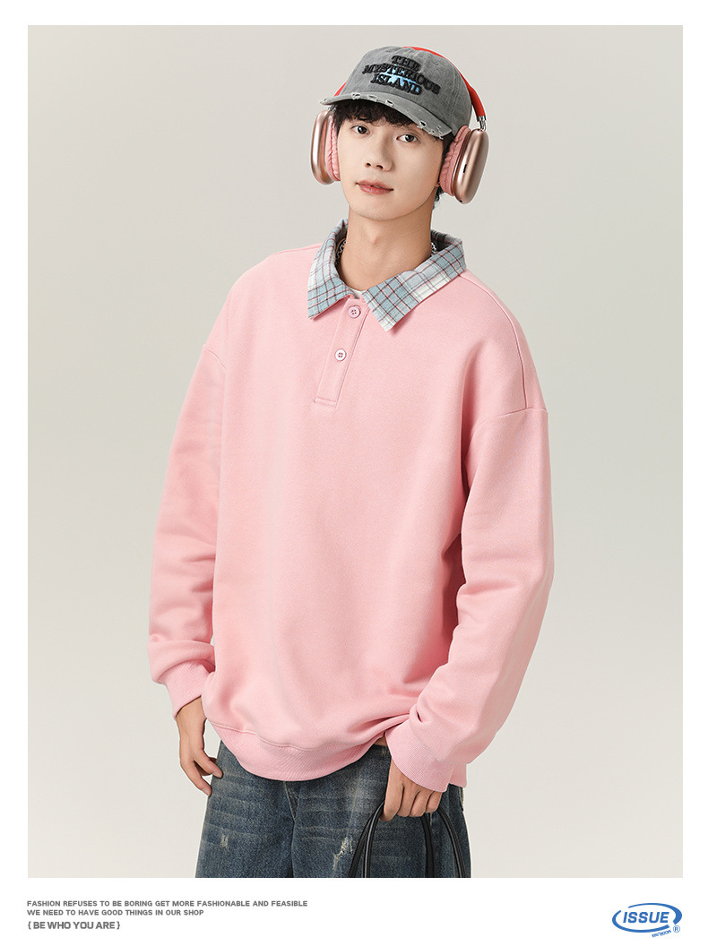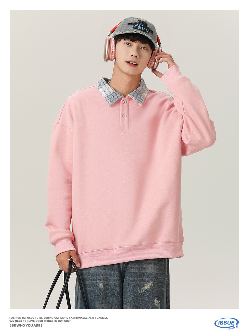 스웨터 남성 2024 새로운 패션 브랜드 남성용 루즈 의류 캐주얼 컬러 매칭 롱 슬리브 티셔츠 POLO 셔츠 남성용 재킷