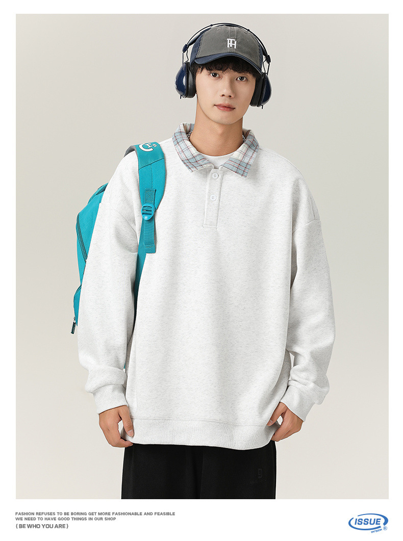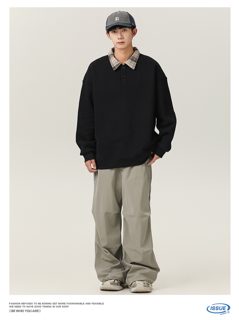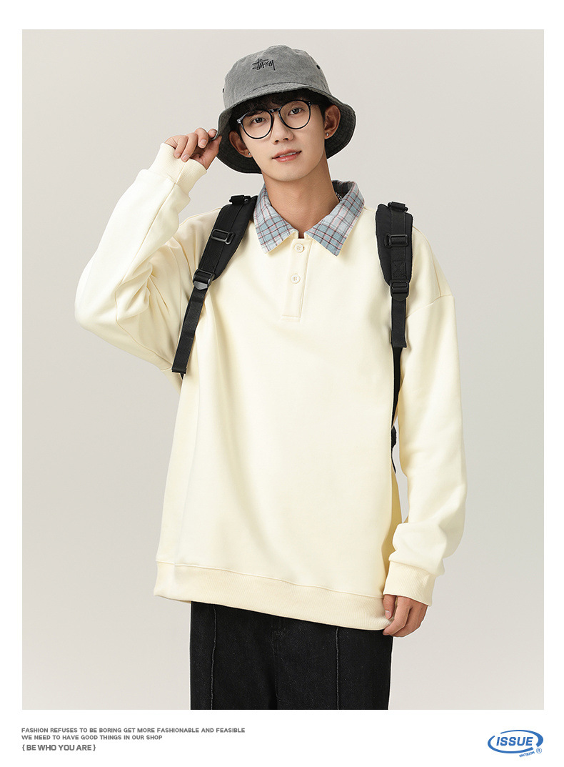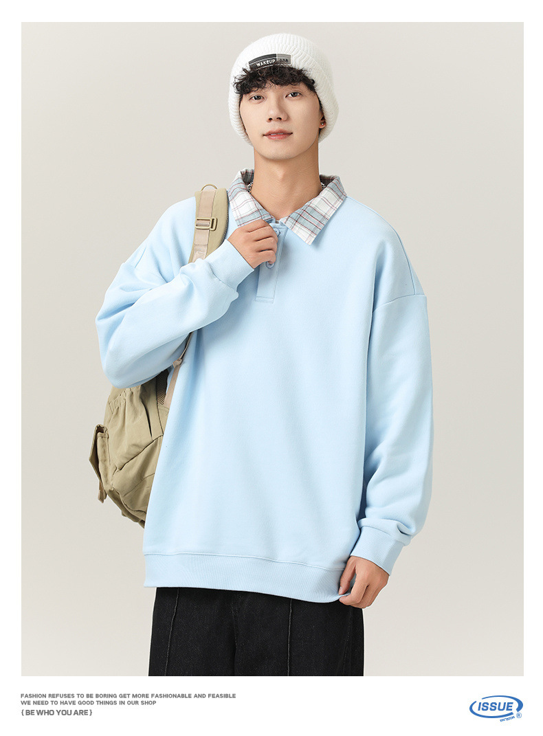스웨터 남성 2024 새로운 패션 브랜드 남성용 루즈 의류 캐주얼 컬러 매칭 롱 슬리브 티셔츠 POLO 셔츠 남성용 재킷