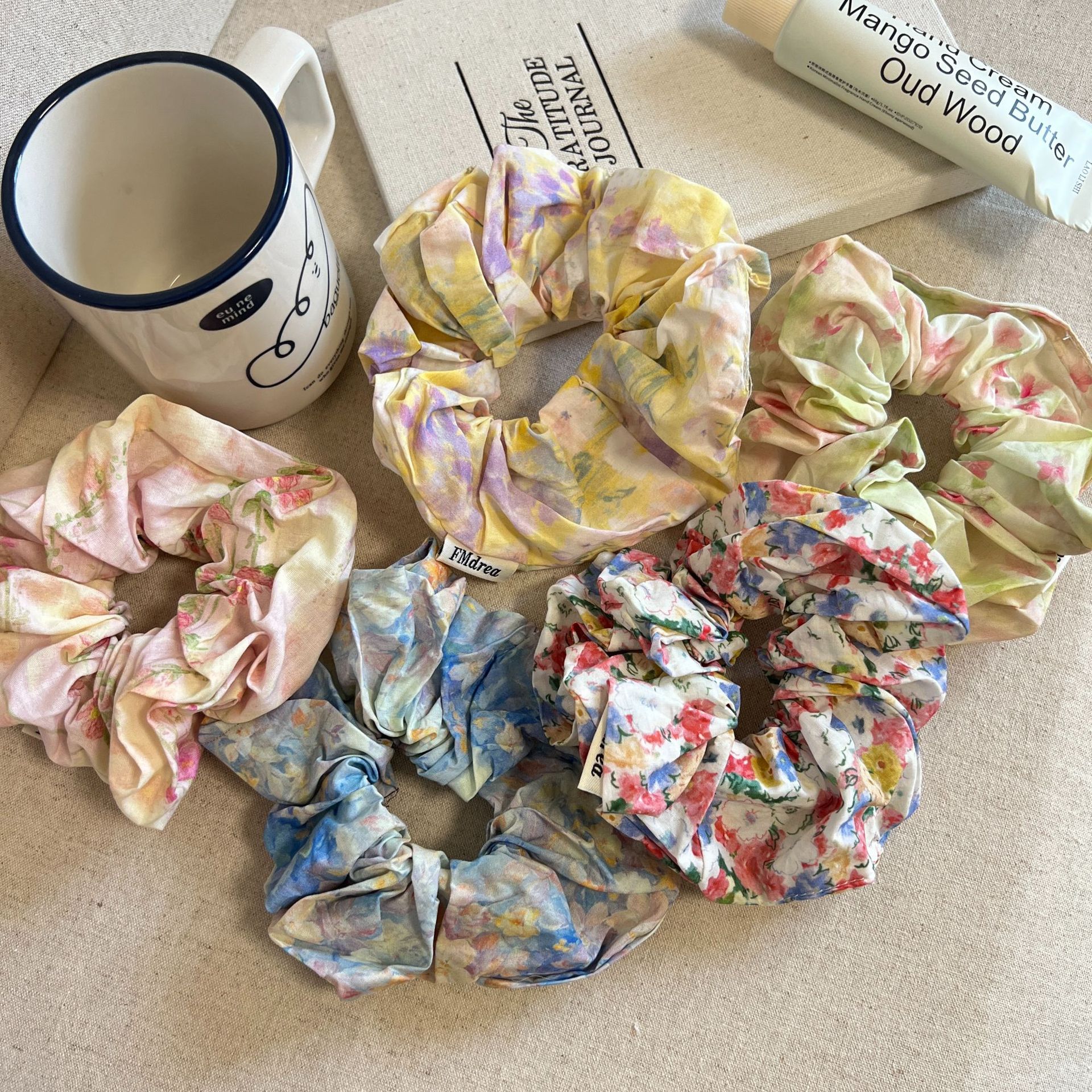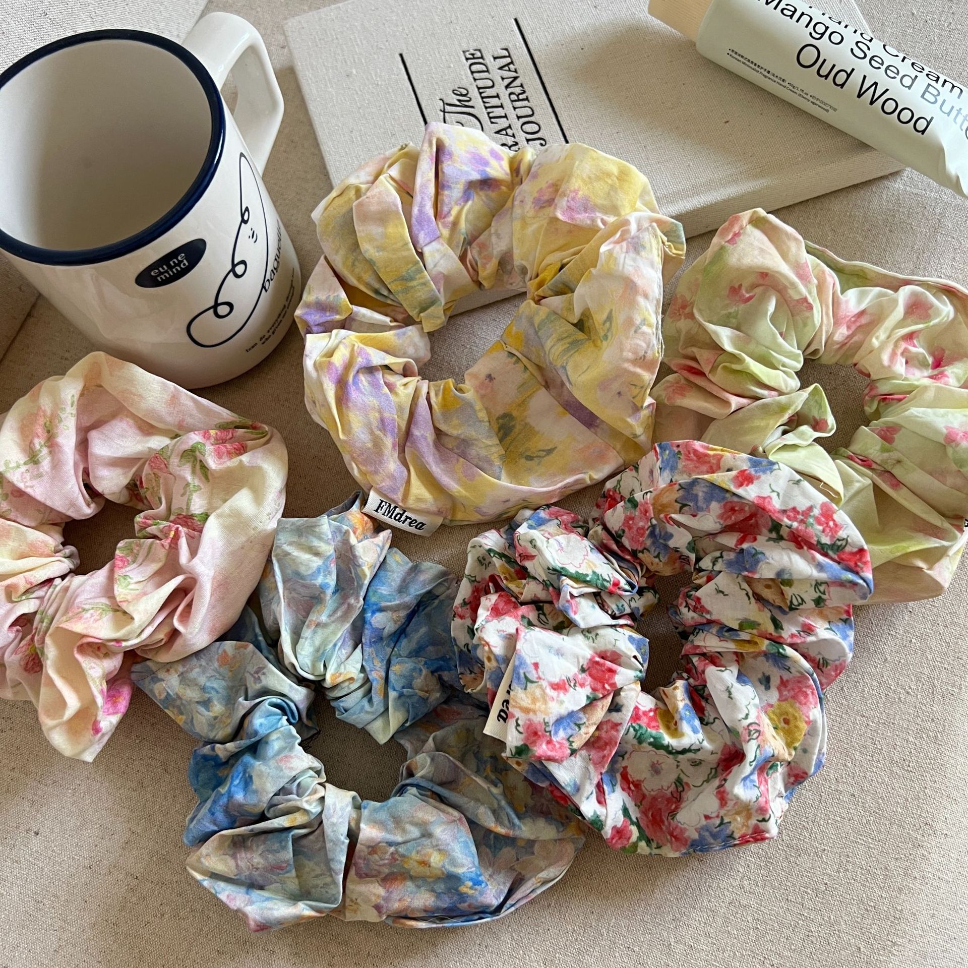 Qimeng Fei 회화 ~ 핑크 꽃 대형 장내 헤어 링 여성 모리 하이 레벨 올 매치 헤드 웨어 헤어 타이 대형 헤어 로프스토어 가기