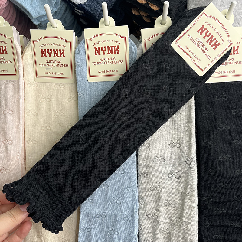 2025 여름 새로운 얇은 활 메쉬 면 양말 단색 양말 튜브 여성 양말 도매 나무 귀 양말스토어 가기
