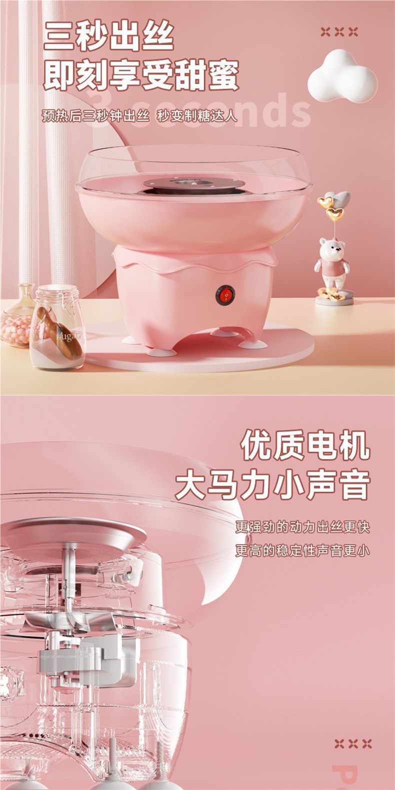 어린이를 위한 마시멜로 기계, 가정용 완전 자동 마시멜로 기계, 수제 미니 팬시 컬러 설탕