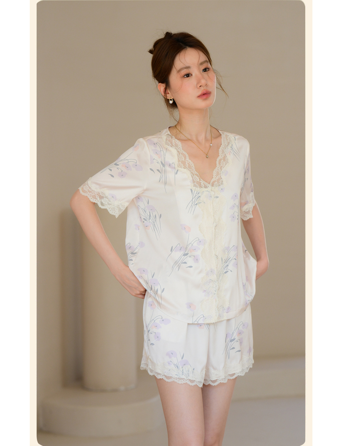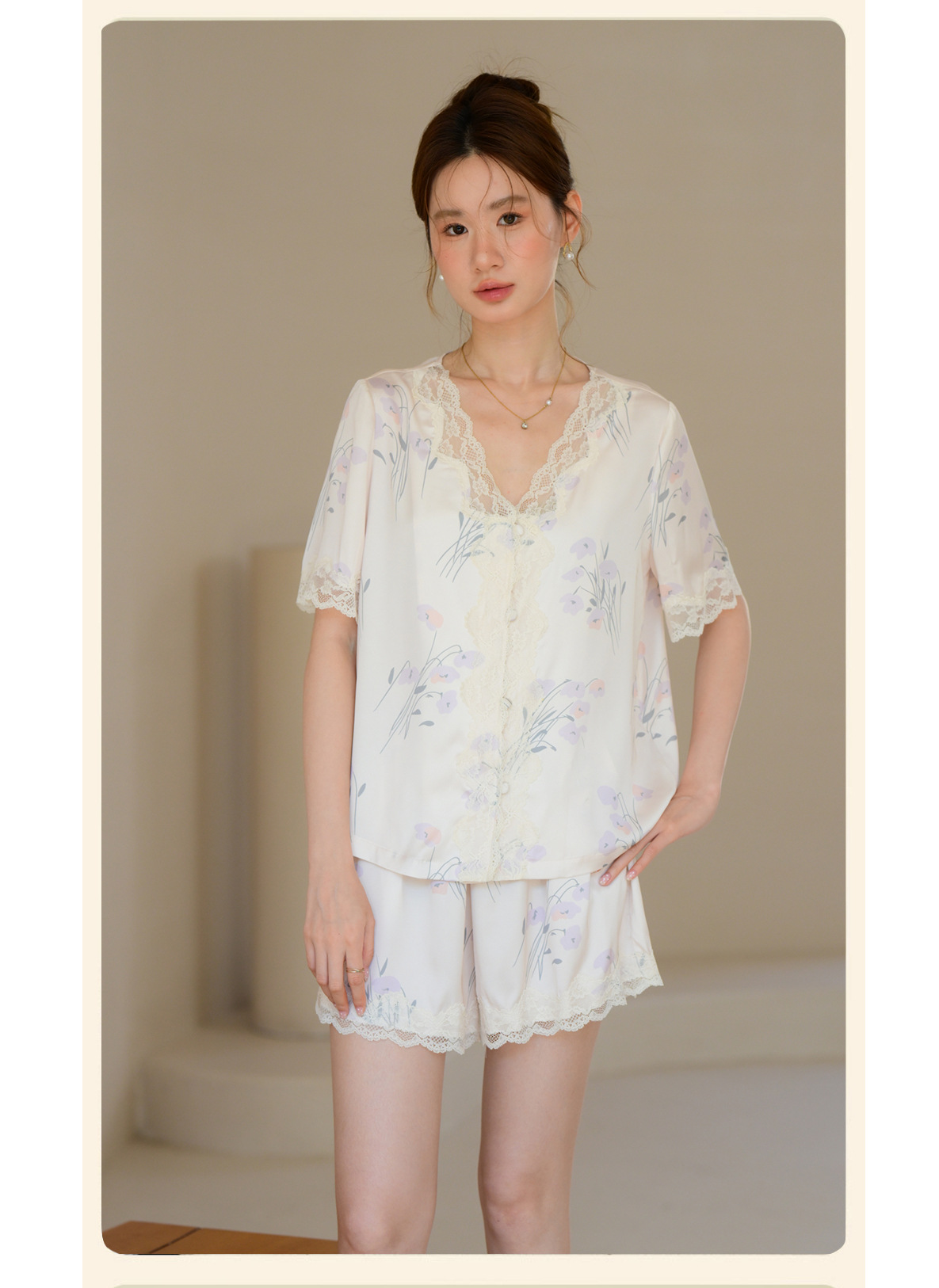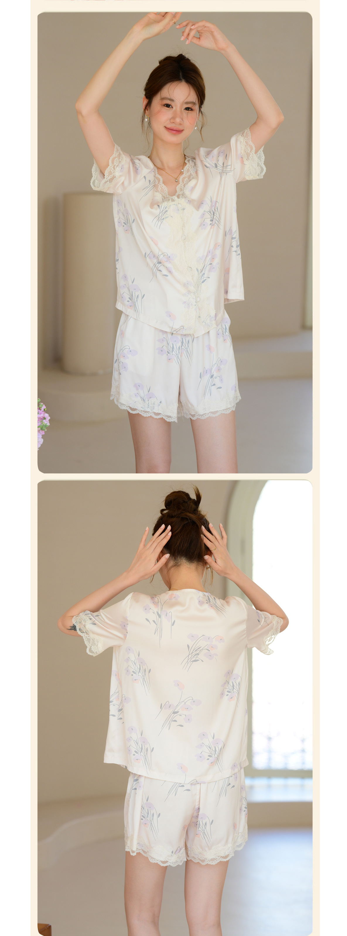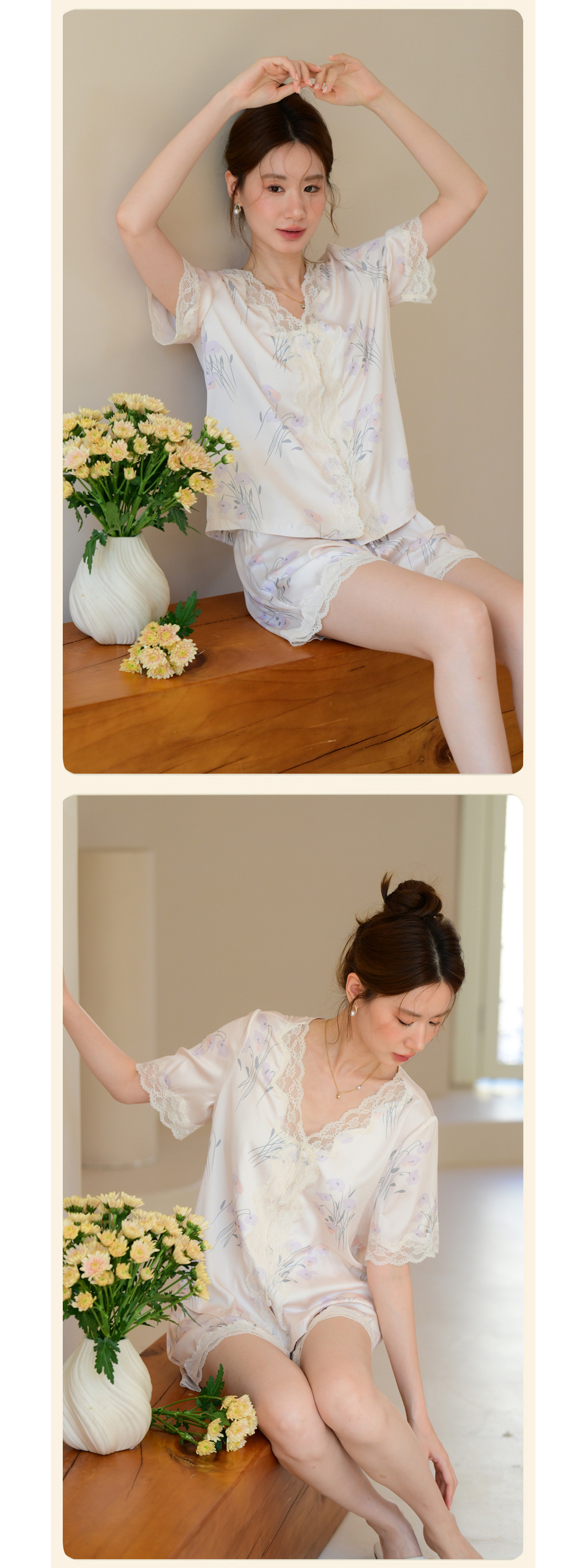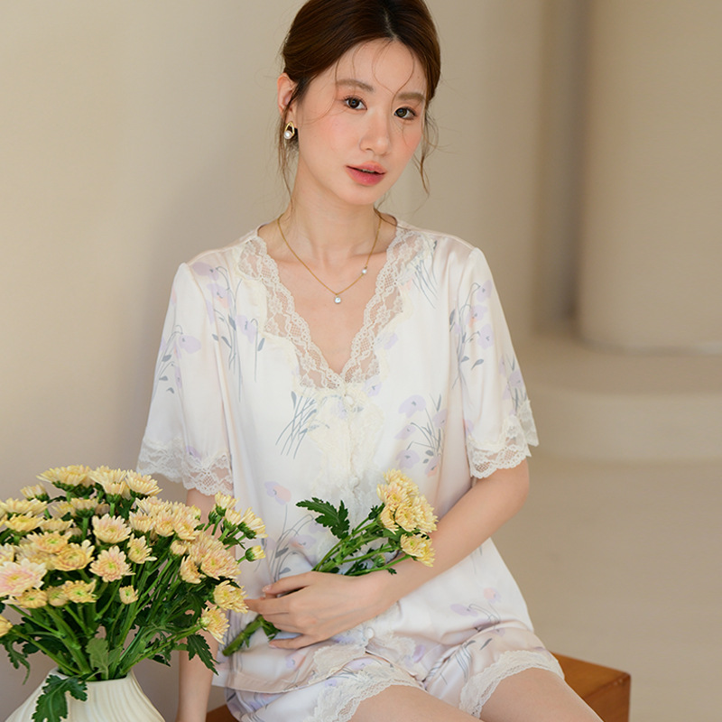 여성을 위한 새로운 여름 고급 잠옷, 꽃무늬, 가벼운 럭셔리 라펠 반팔 반바지, 홈웨어, 외부에서 착용 가능한 슈트스토어 가기