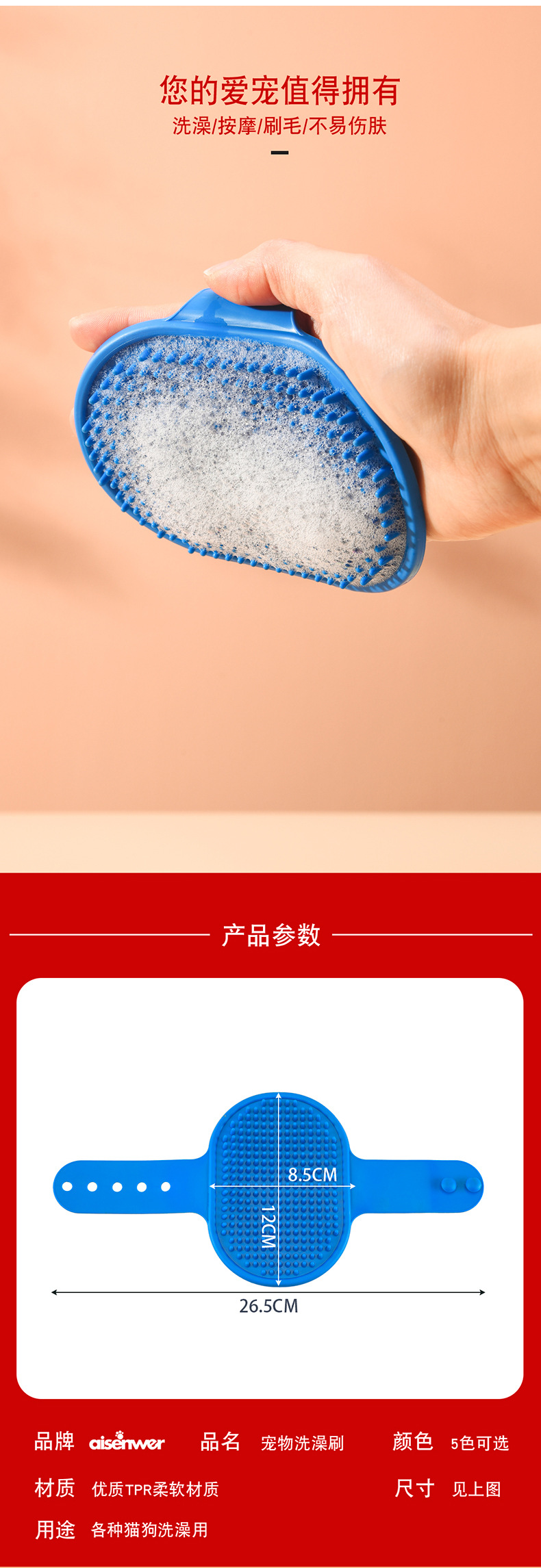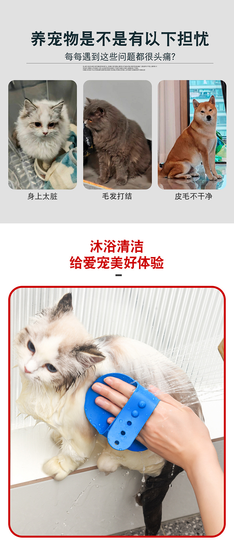 애완 동물 목욕 브러시 실리콘 개 목욕 장갑 마사지 브러시 고양이 청소 목욕 브러시 애완 동물 용품 크로스 보더스토어 가기