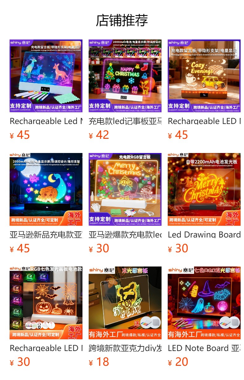 국경을 넘는 인기 어린이 발광 그림판 아크릴 투명 그림판 지울 수 있는 메모판 어린이 선물스토어 가기