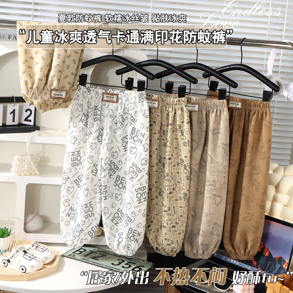 여름 신작 아동 캐주얼 바지, 중소형 아동용 루즈한 모기 방지 바지, 한국식 숲 바지, 아기 에어컨 바지스토어 가기
