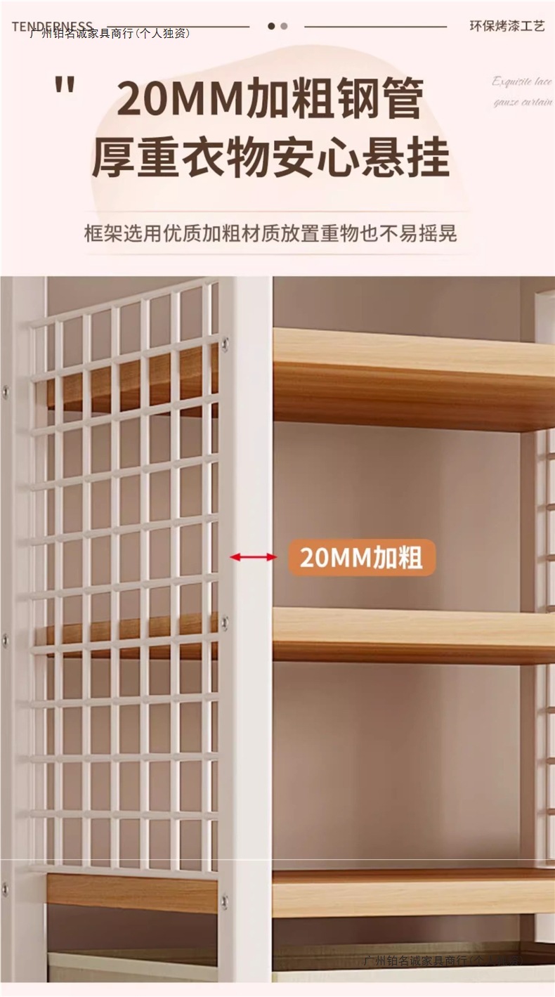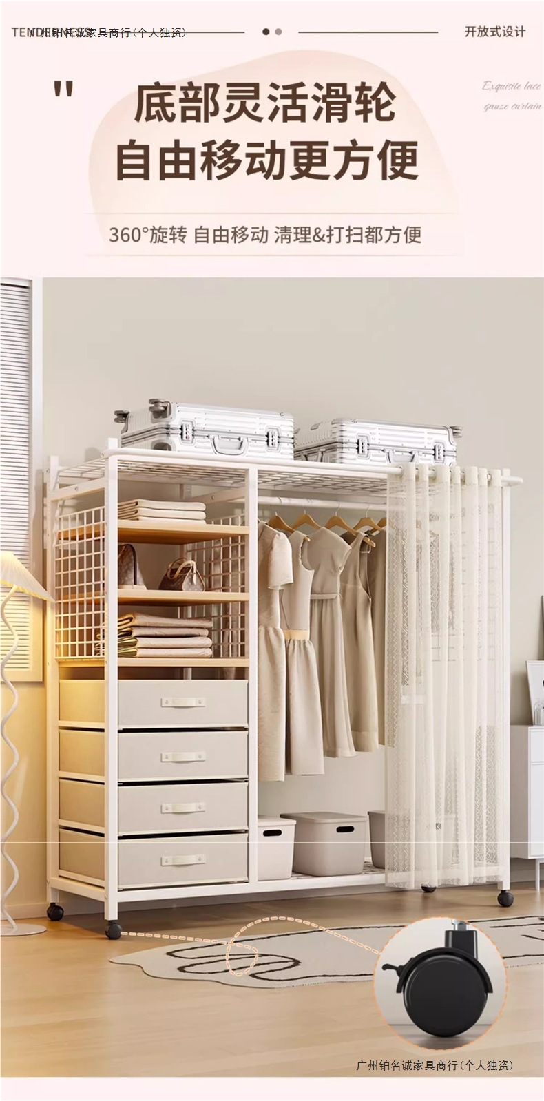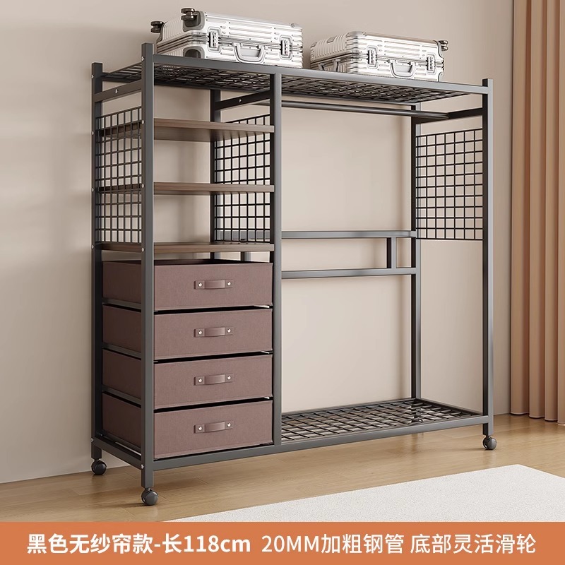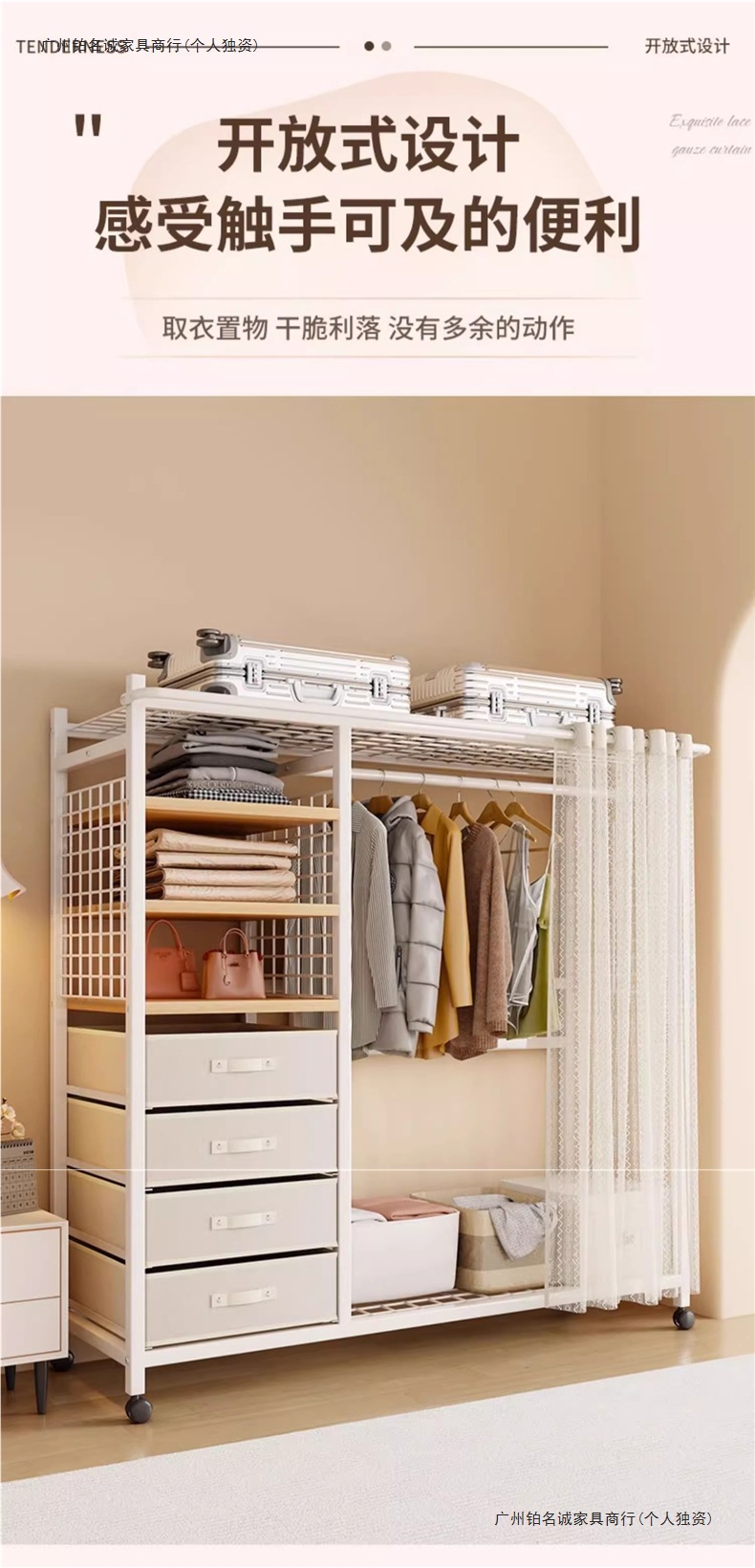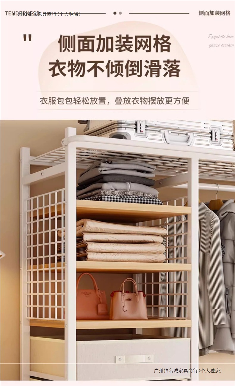 간단한 옷장 철제 천 옷장 침실 계층형 수납 가구 방진 옷장 임대실 개방형 옷걸이