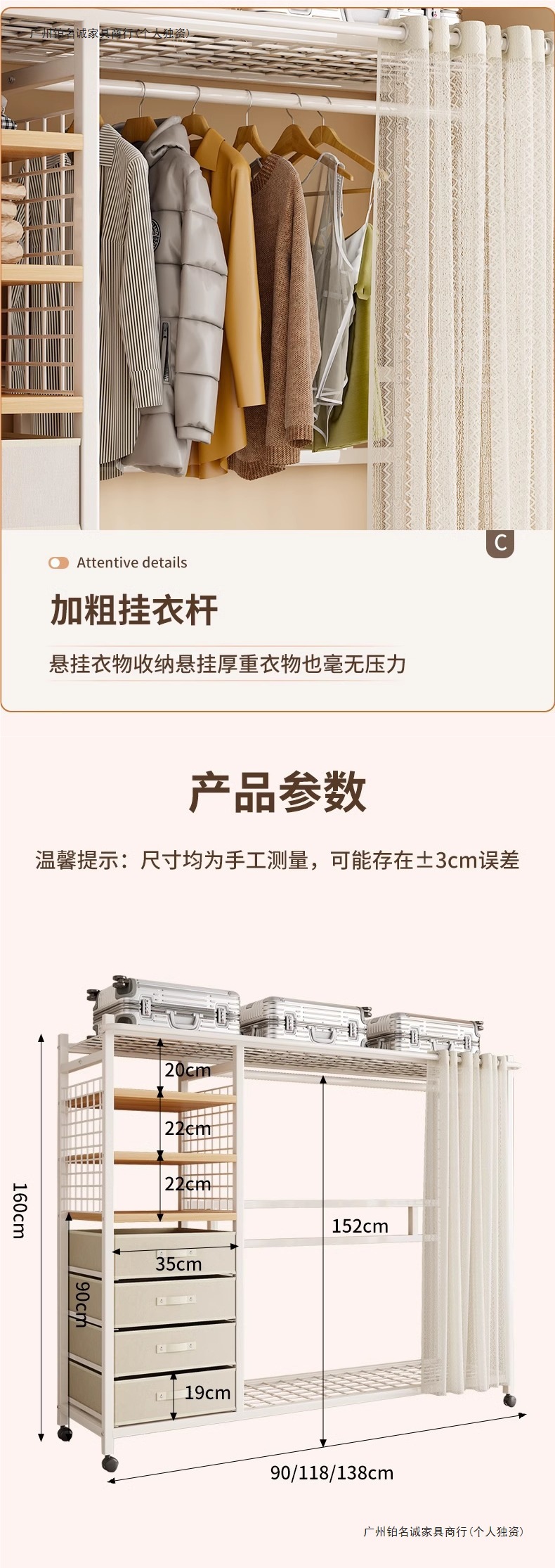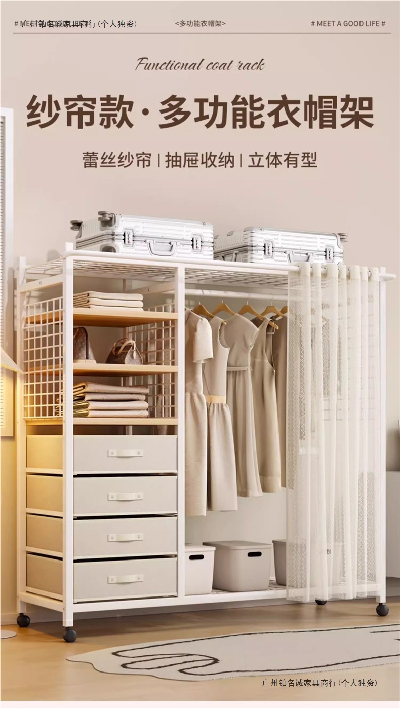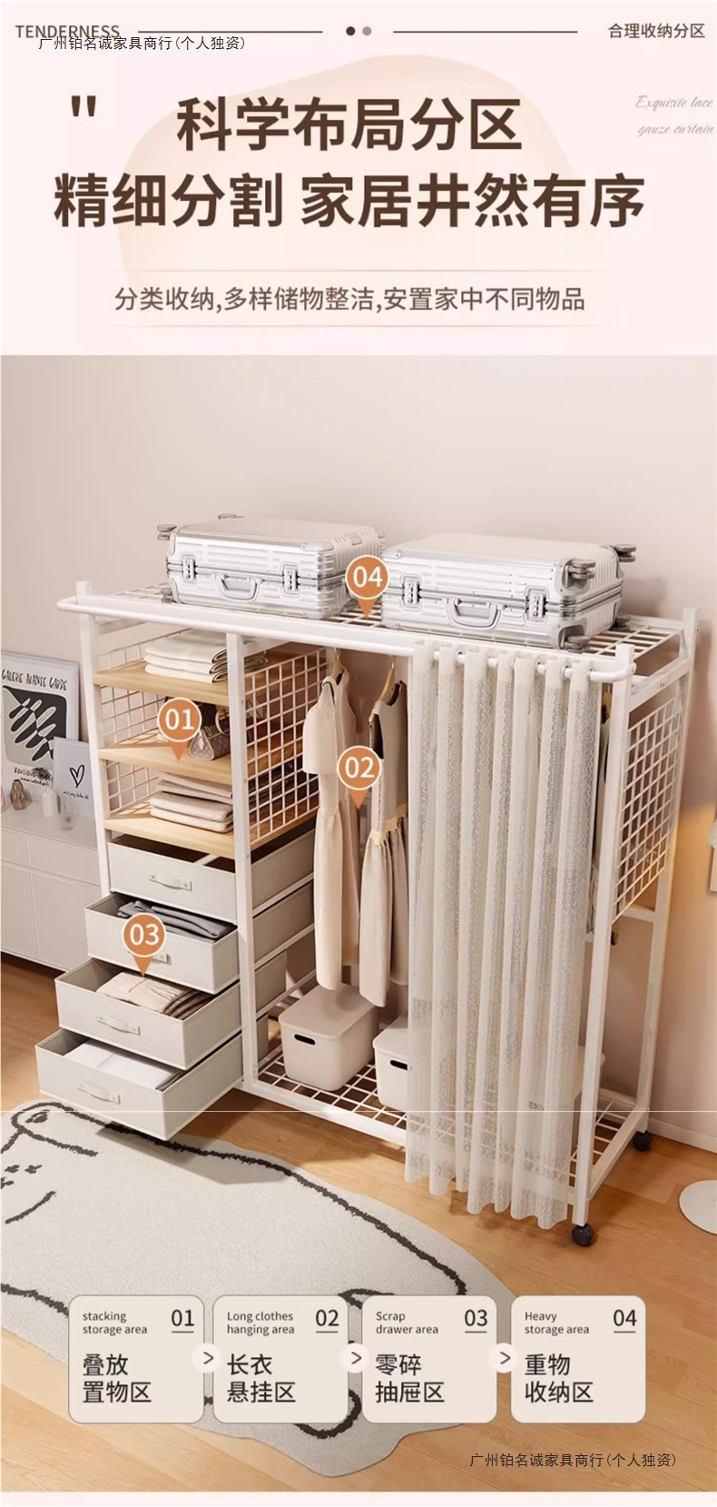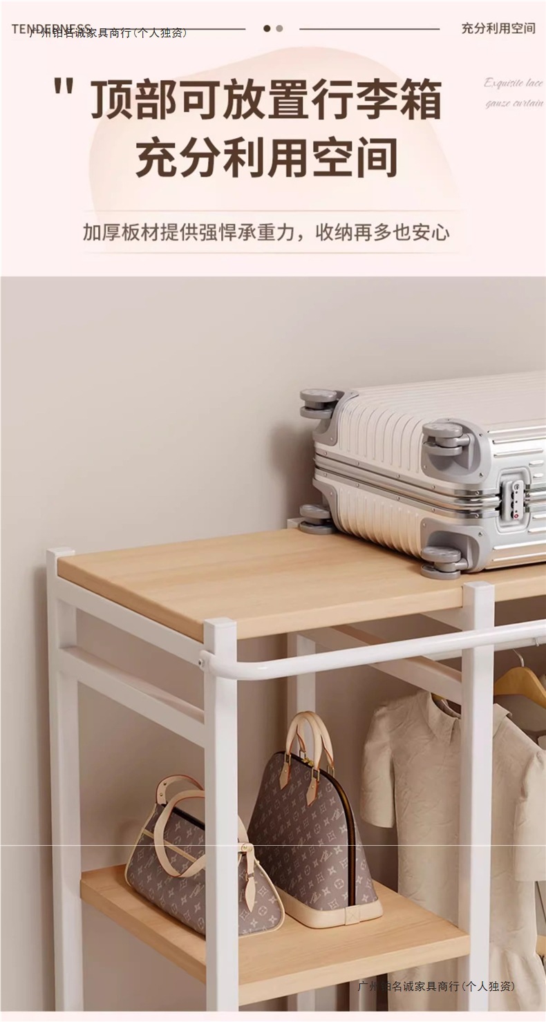 간단한 옷장 철제 천 옷장 침실 계층형 수납 가구 방진 옷장 임대실 개방형 옷걸이