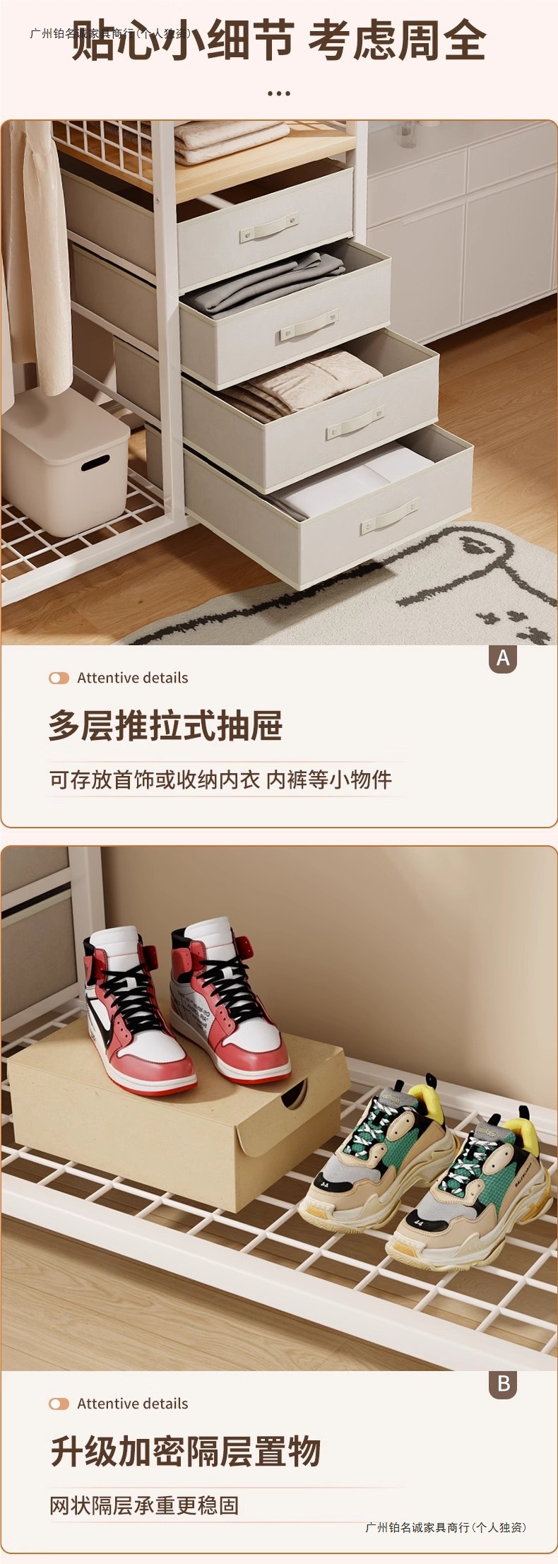 간단한 옷장 철제 천 옷장 침실 계층형 수납 가구 방진 옷장 임대실 개방형 옷걸이스토어 가기