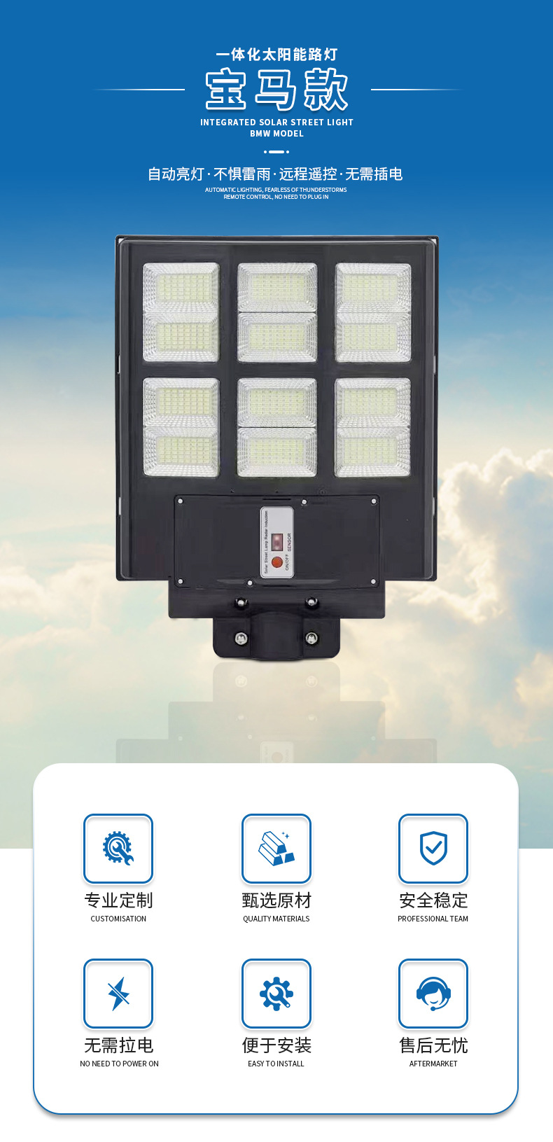 국경 간 뜨거운 판매 태양 가로등 야외 강한 빛 정원 안뜰 BMW 통합 태양 가로등스토어 가기