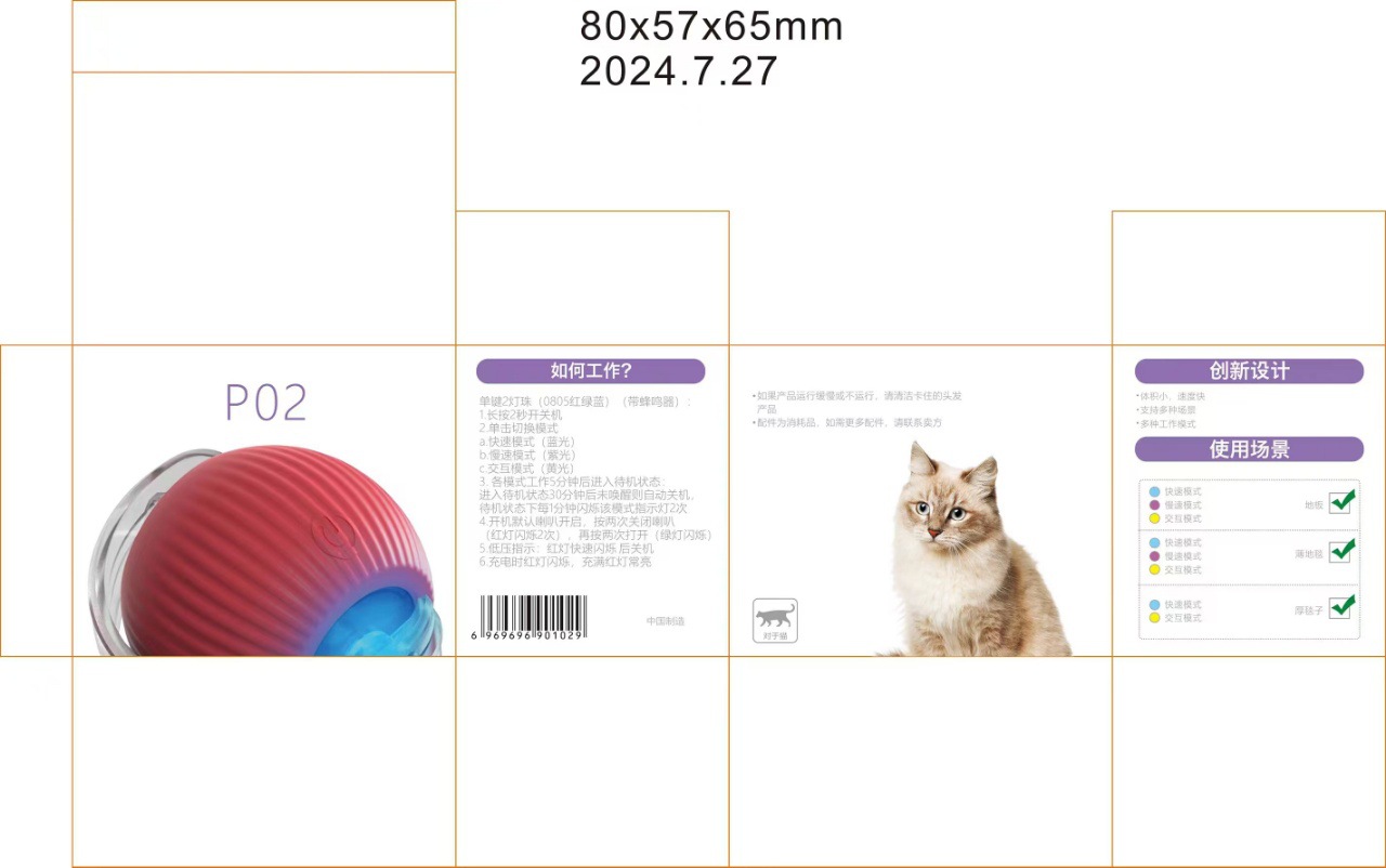 • 레드 스마트 캣볼-[3단 조절 가능][매우 긴 배터리 수명]-(USB 충전 케이블 포함)