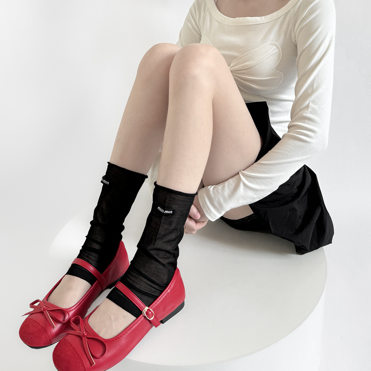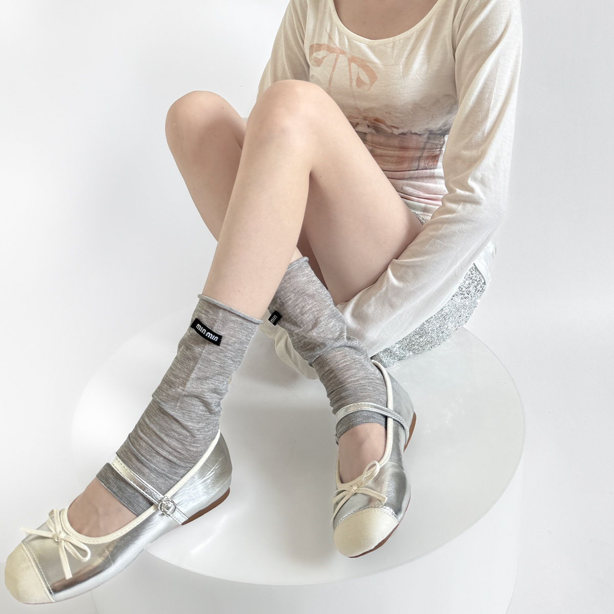 여름 얇은 한국식 영어 천 라벨 발 양말 플랫 인 푸시업 레그 커버 그레이 다용도 통기성 양말스토어 가기