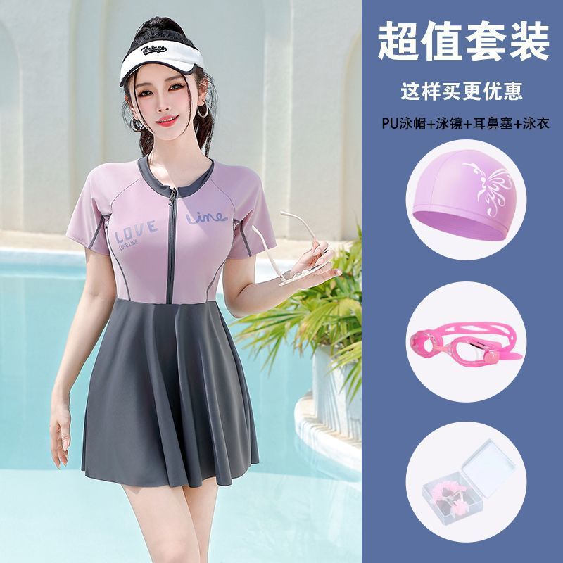 여성용 수영복 2025 새로운 핫 스타일 보수적 인 원피스 배 커버 슬리밍 플러스 사이즈 뚱뚱한 mm 하이 엔드 온천 수영복스토어 가기