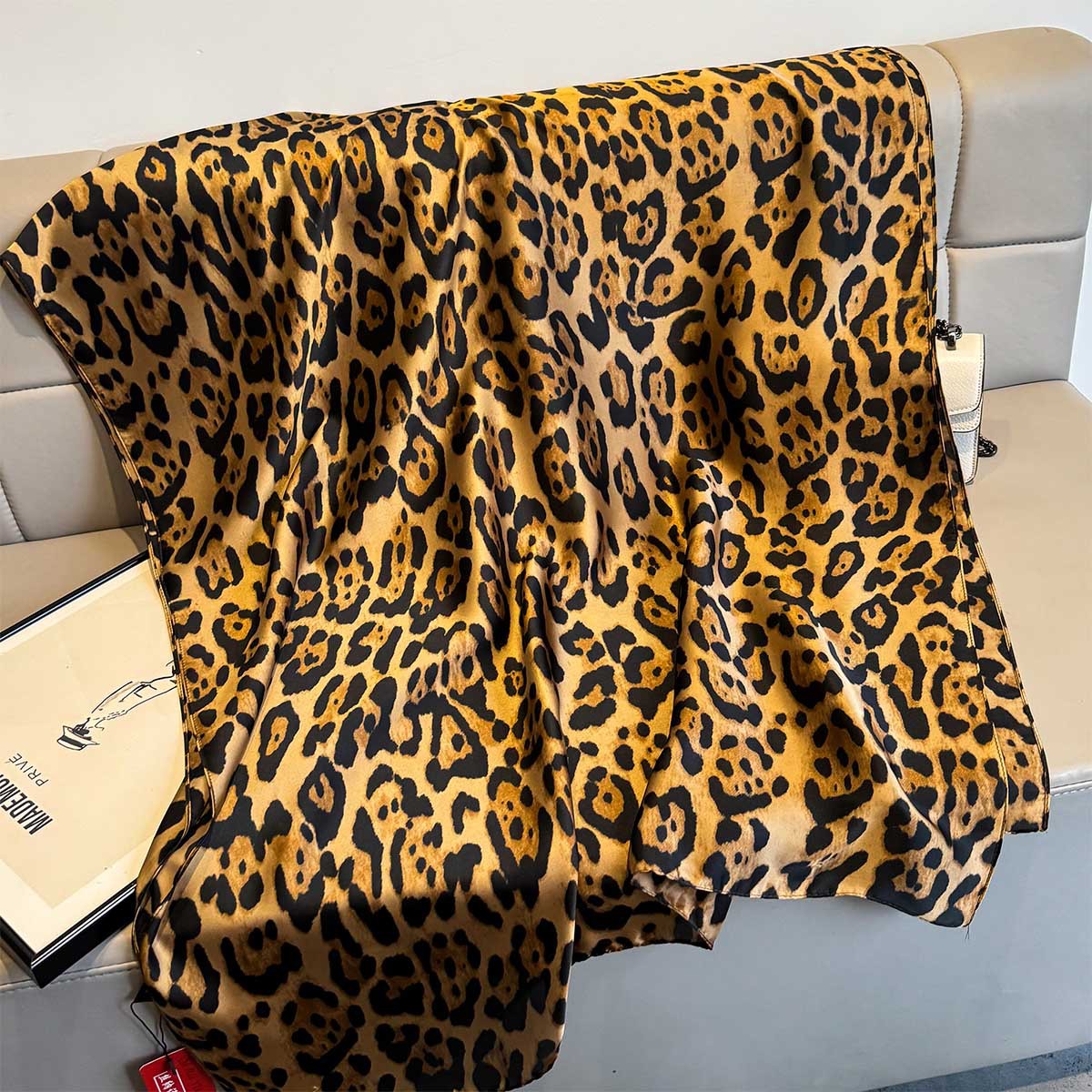 여름 패션 레오파드 프린트 핫 세일 실크 스카프, 다용도 아우터 자외선 차단 숄, 고급 패션 에어컨 스카프, 얇고 트렌디함스토어 가기