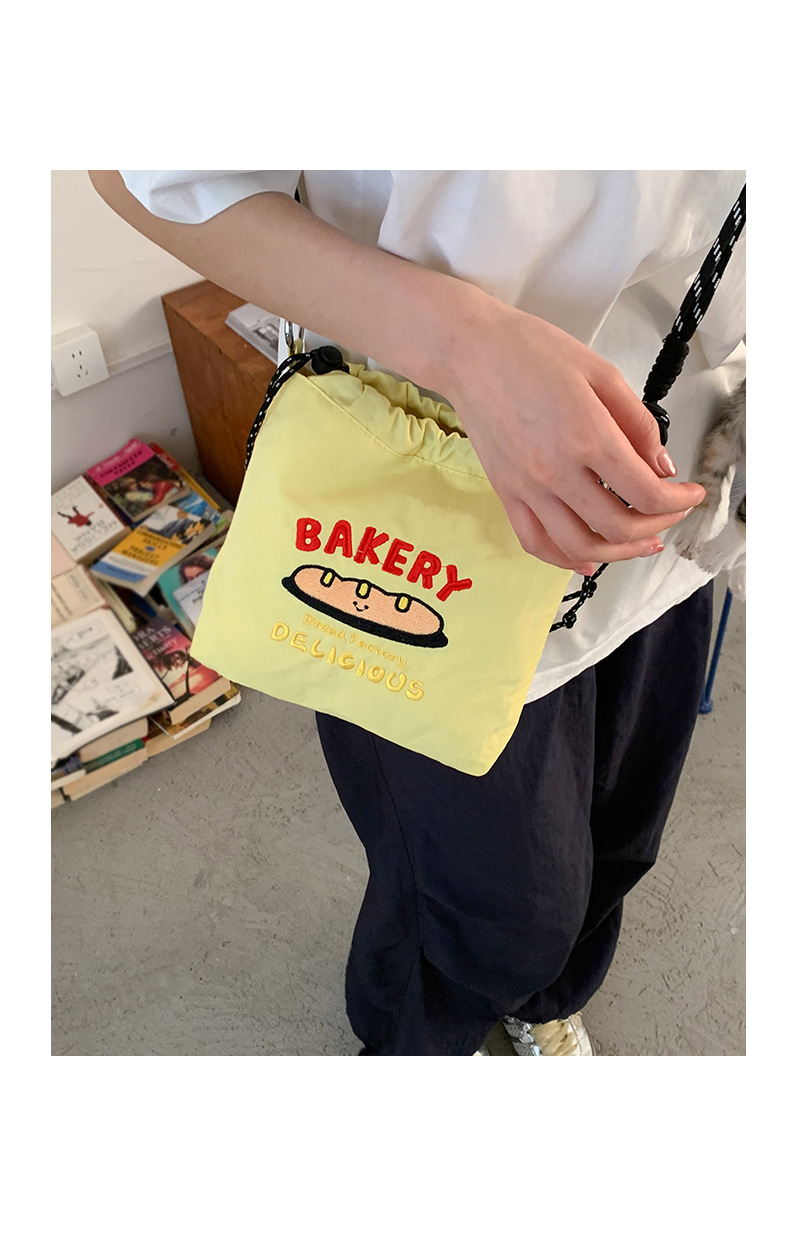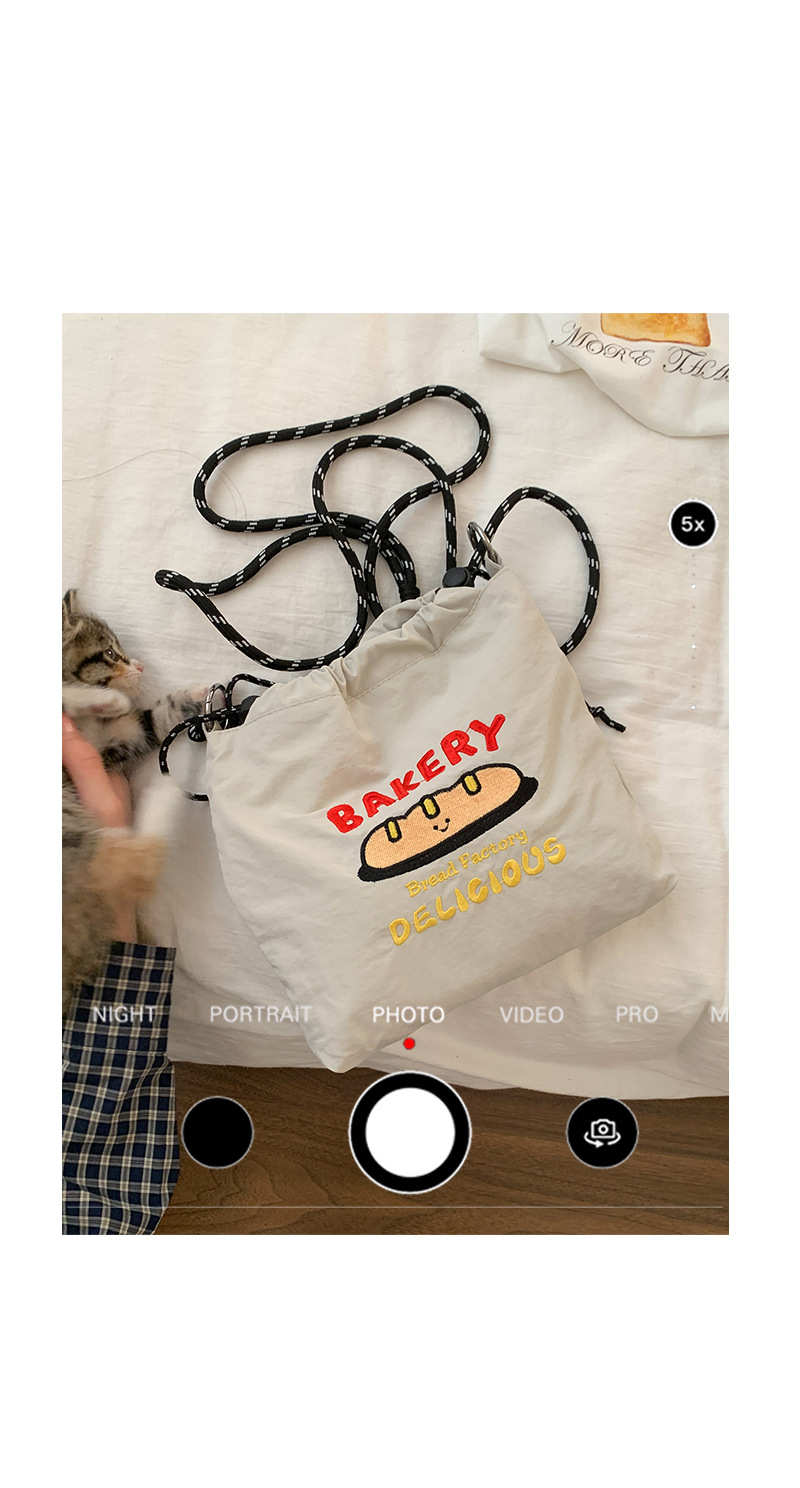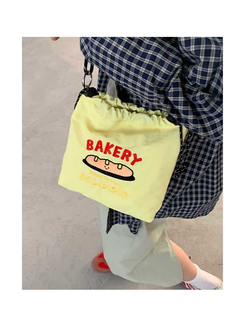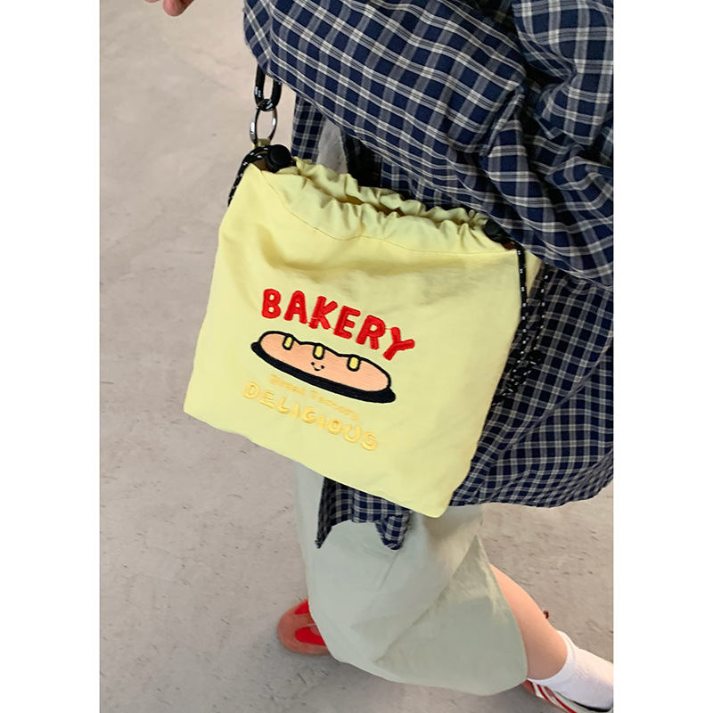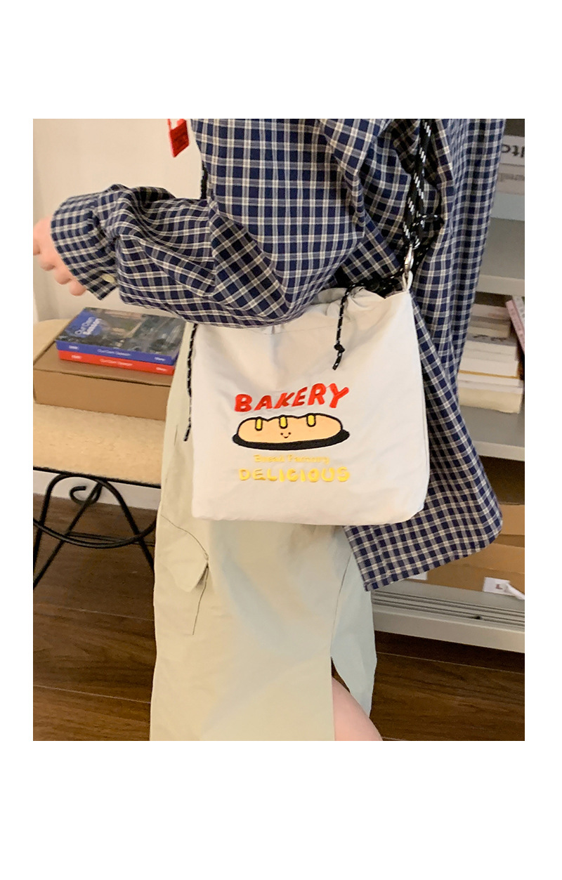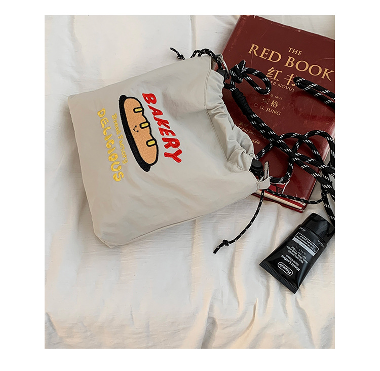 여름 간단한 나일론 헝겊 가방 여성의 2025 새 편지 자수 크로스 바디 가방 여성의 귀여운 어깨 버킷 가방스토어 가기