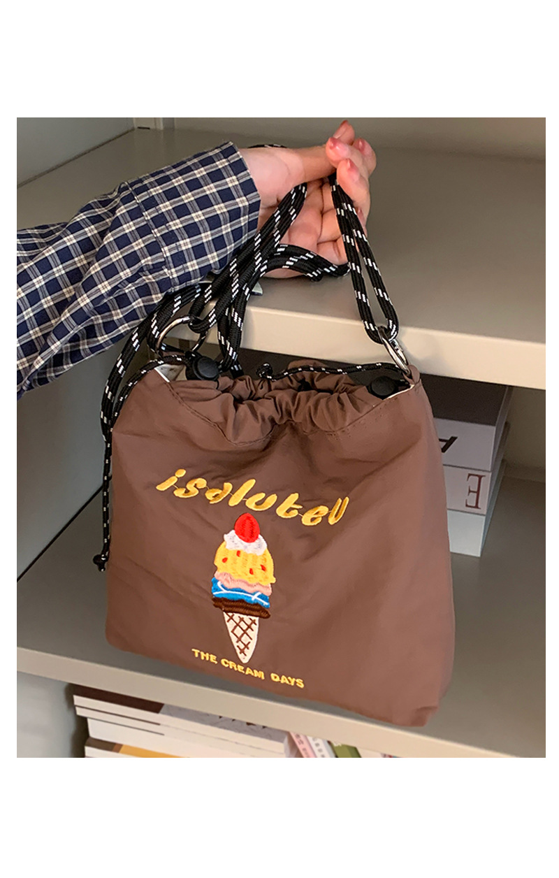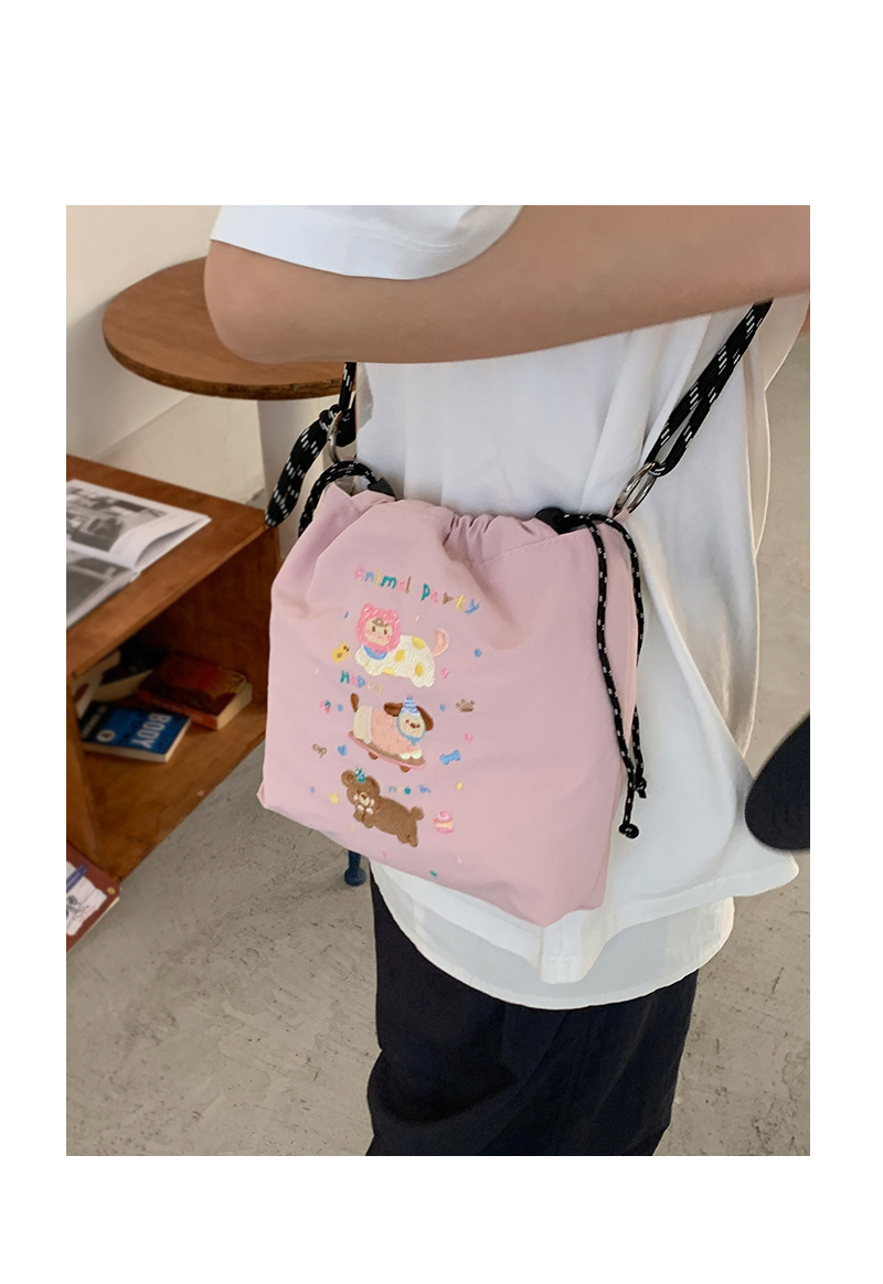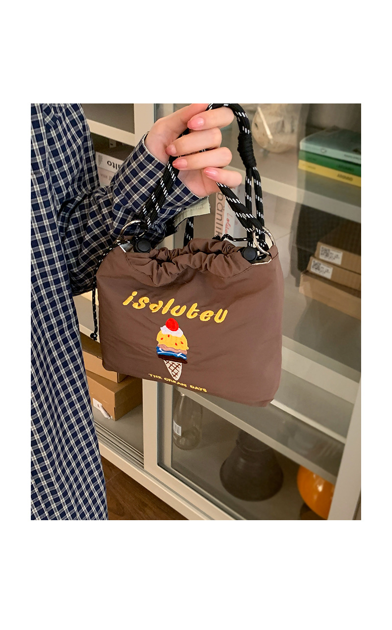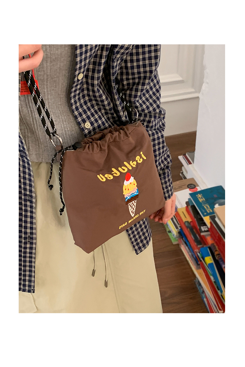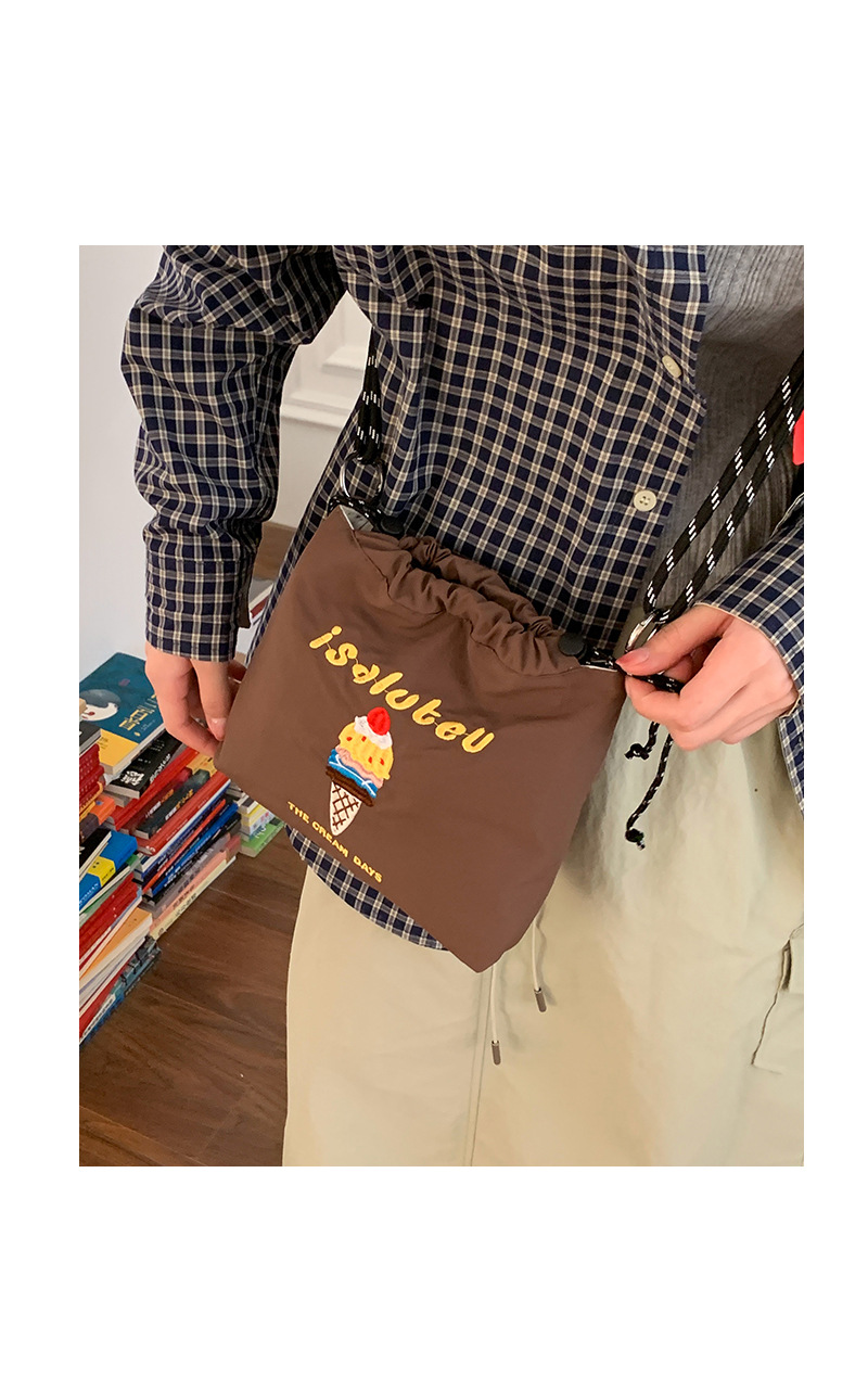 여름 간단한 나일론 헝겊 가방 여성의 2025 새 편지 자수 크로스 바디 가방 여성의 귀여운 어깨 버킷 가방스토어 가기