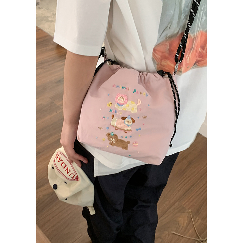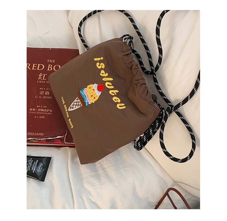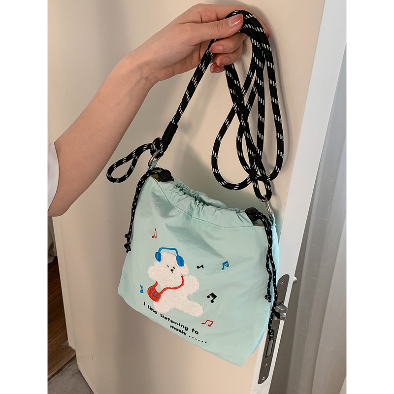 여름 간단한 나일론 헝겊 가방 여성의 2025 새 편지 자수 크로스 바디 가방 여성의 귀여운 어깨 버킷 가방