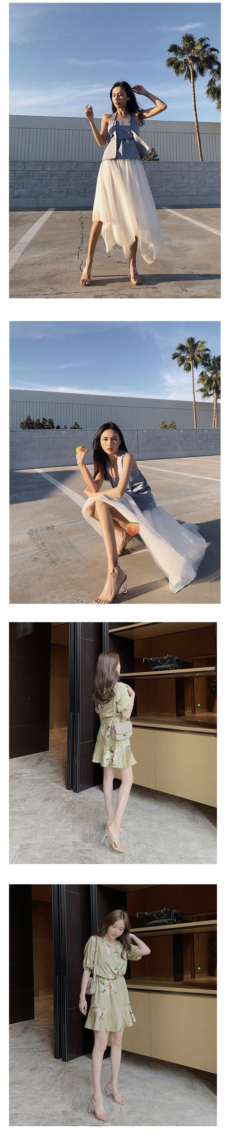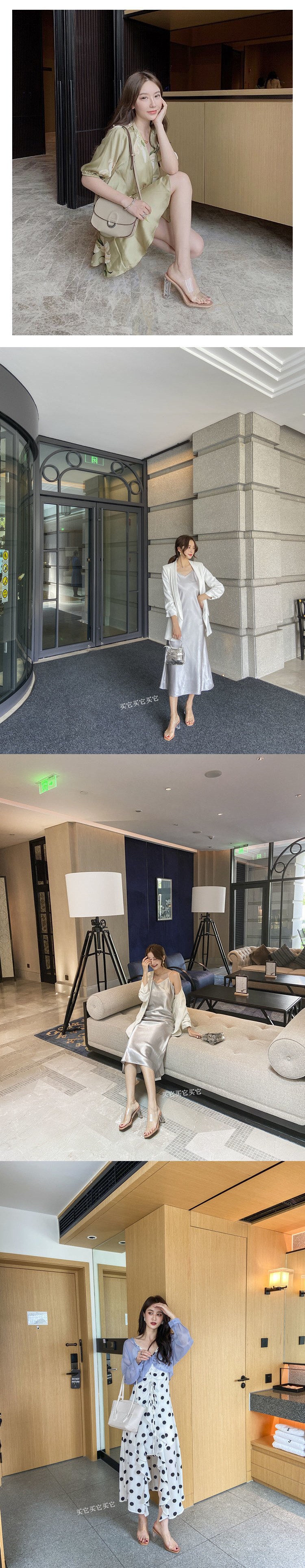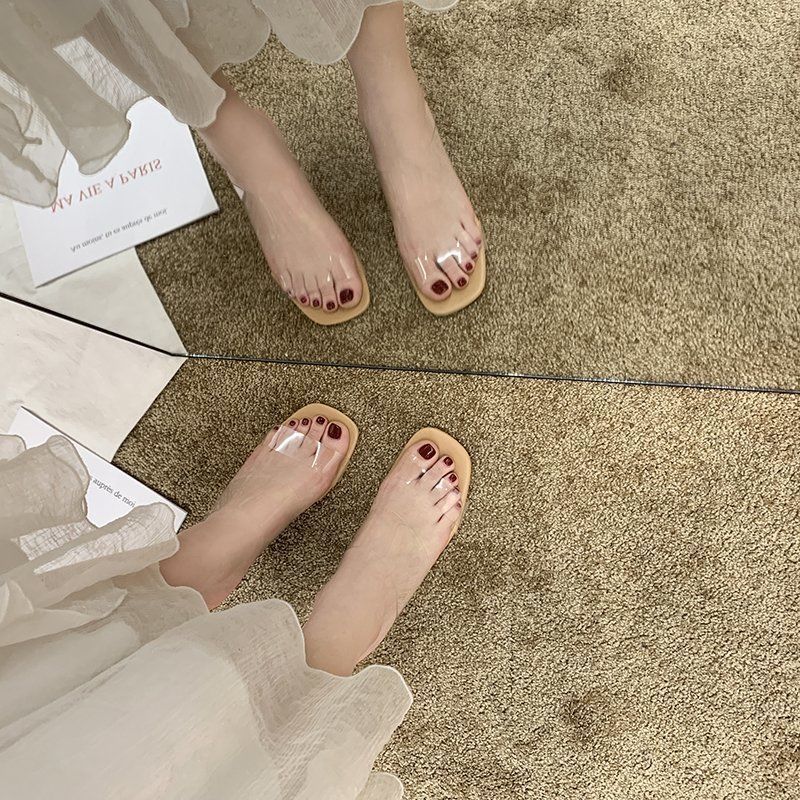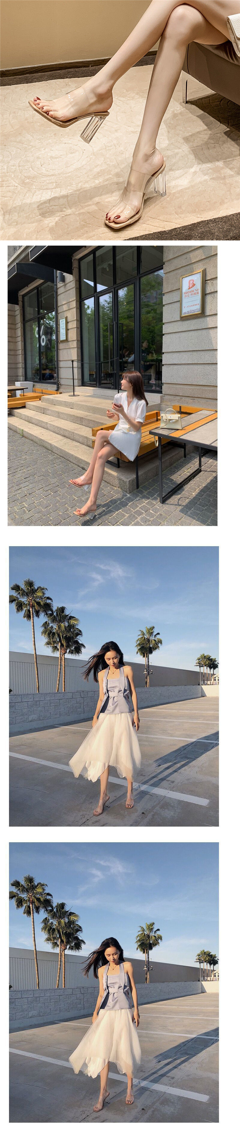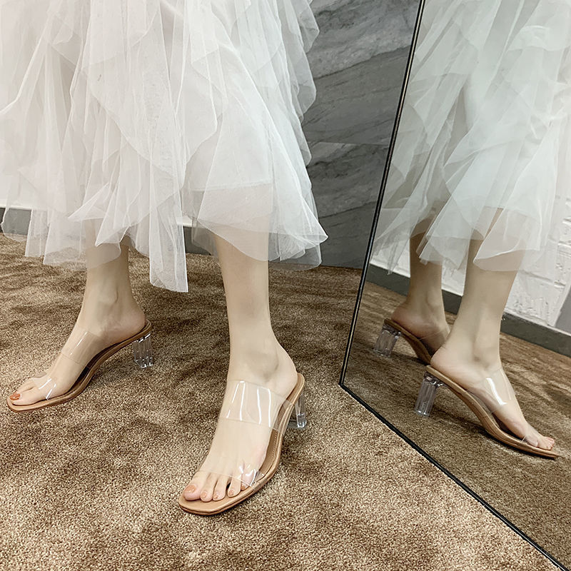 여성용 투명 하이힐 슬리퍼 2025 새로운 다용도 크리스탈 힐 섹시한 요정 스타일 샌들 중간 굽 두꺼운 굽스토어 가기