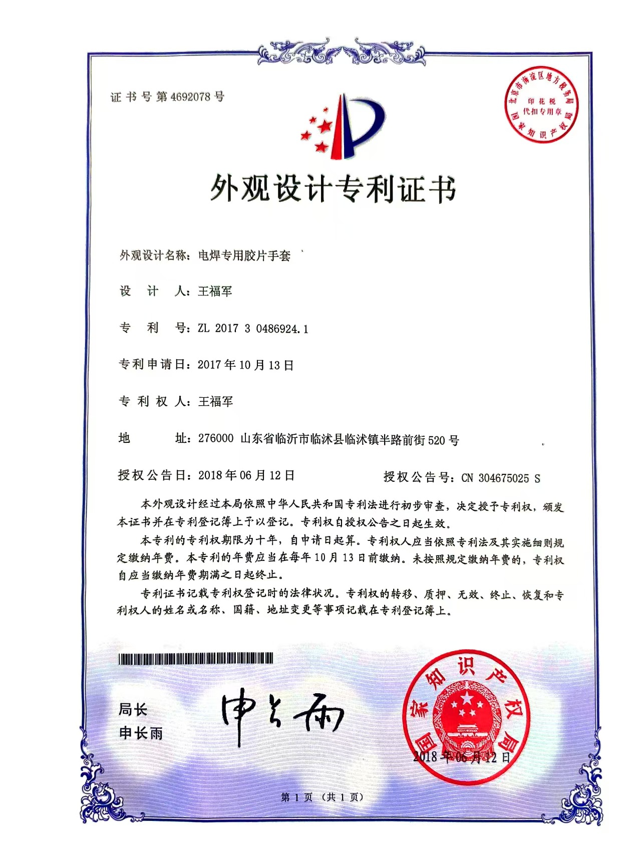 웨이하이센터상호: 威海韩运国际贸易有限公司 法定代表人: 朱 勇奎 统一社会信用代码: 91371000MA3U6XGW6N 进出口: 37109409C6