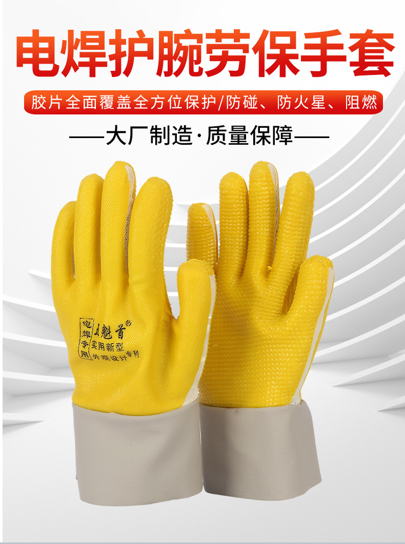 용접 손목 보호 노동 보호 장갑, 내마모성, 충돌 방지 고무 장갑, 보호 통기성 고무 라텍스 노동 보호 장갑, 피부