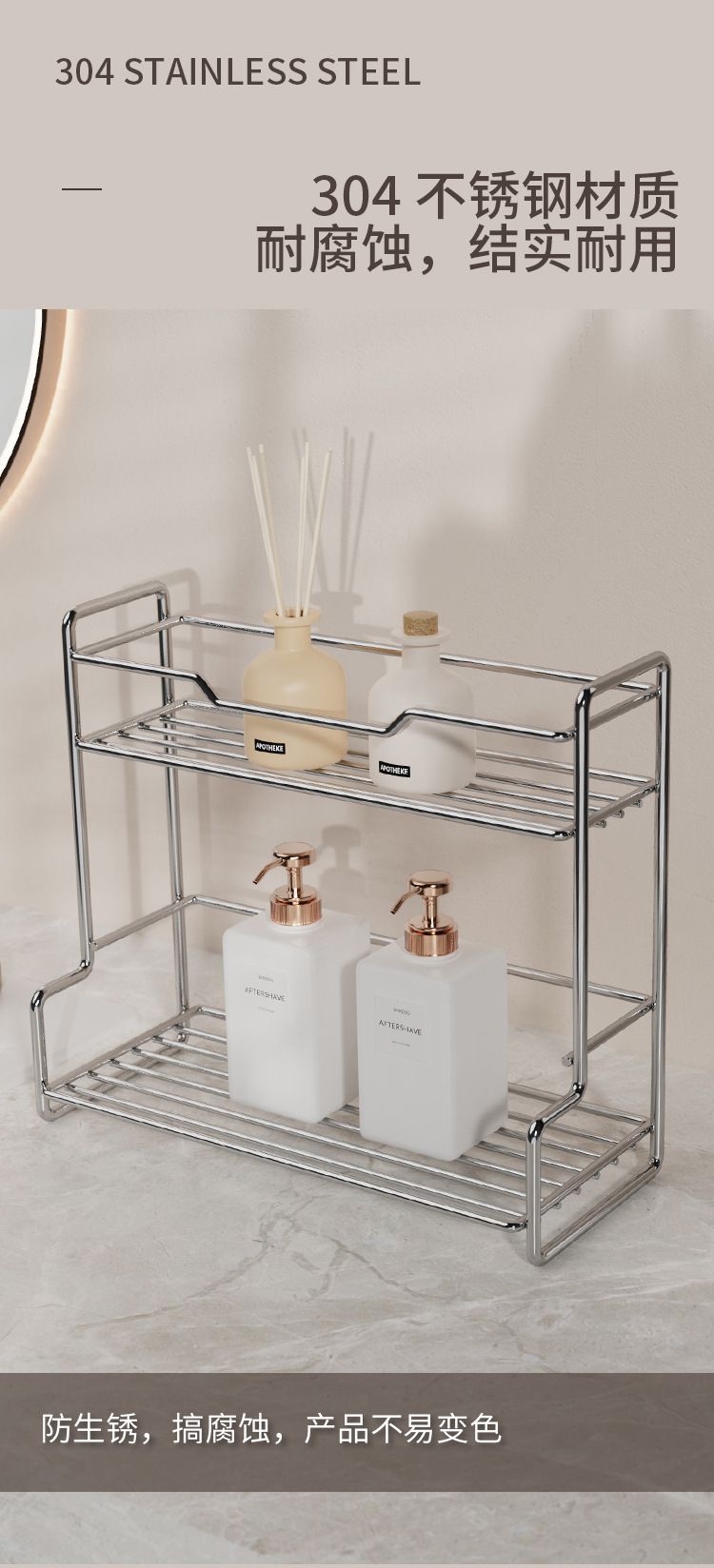 스테인레스 스틸 욕실 랙 펀치 무료 욕실 보관 랙 다기능 침실 주방 데스크탑 보관 랙