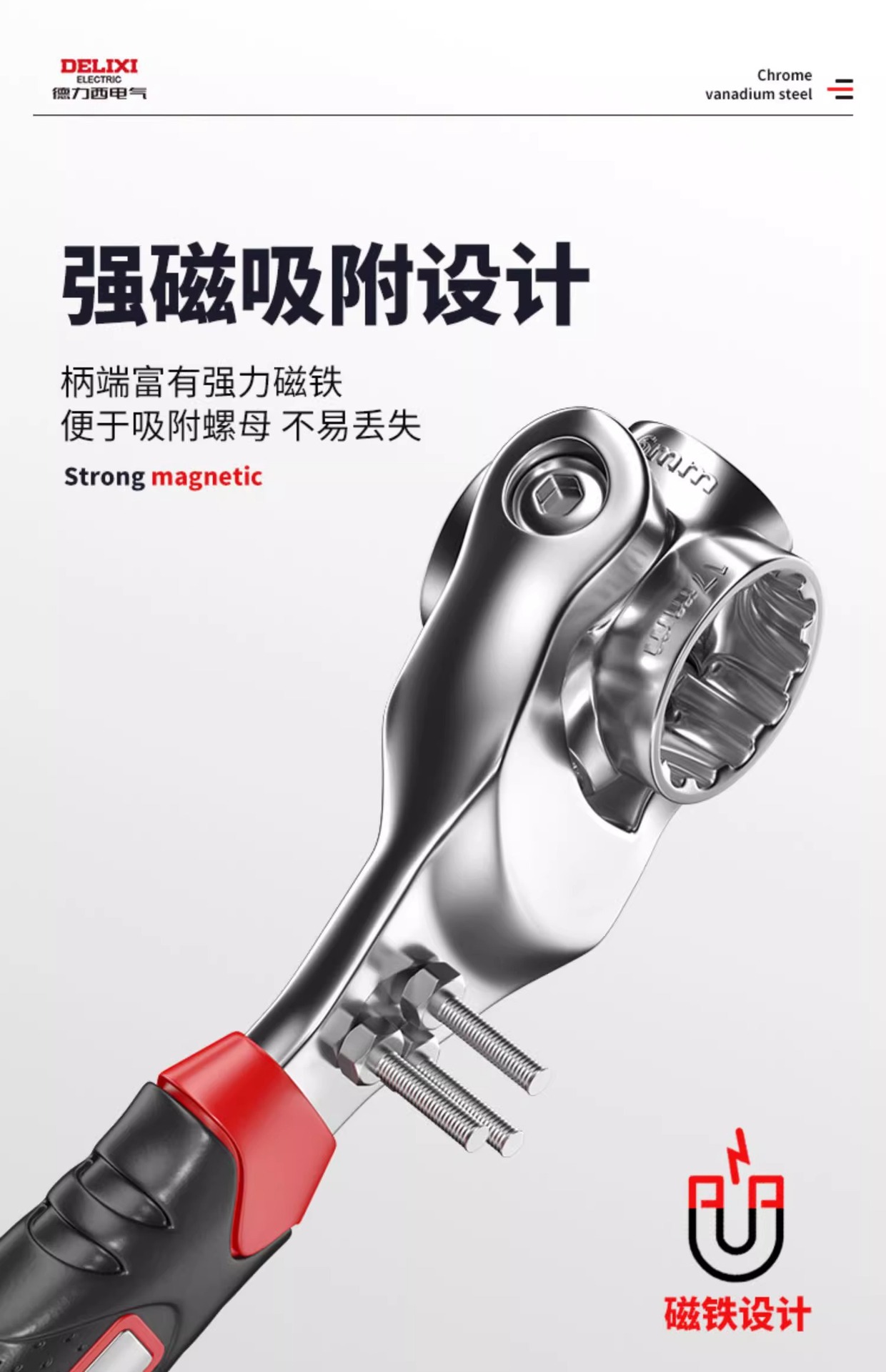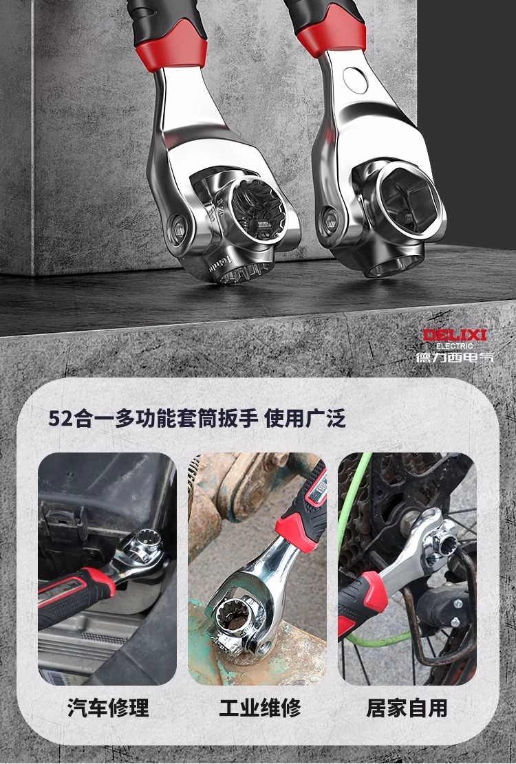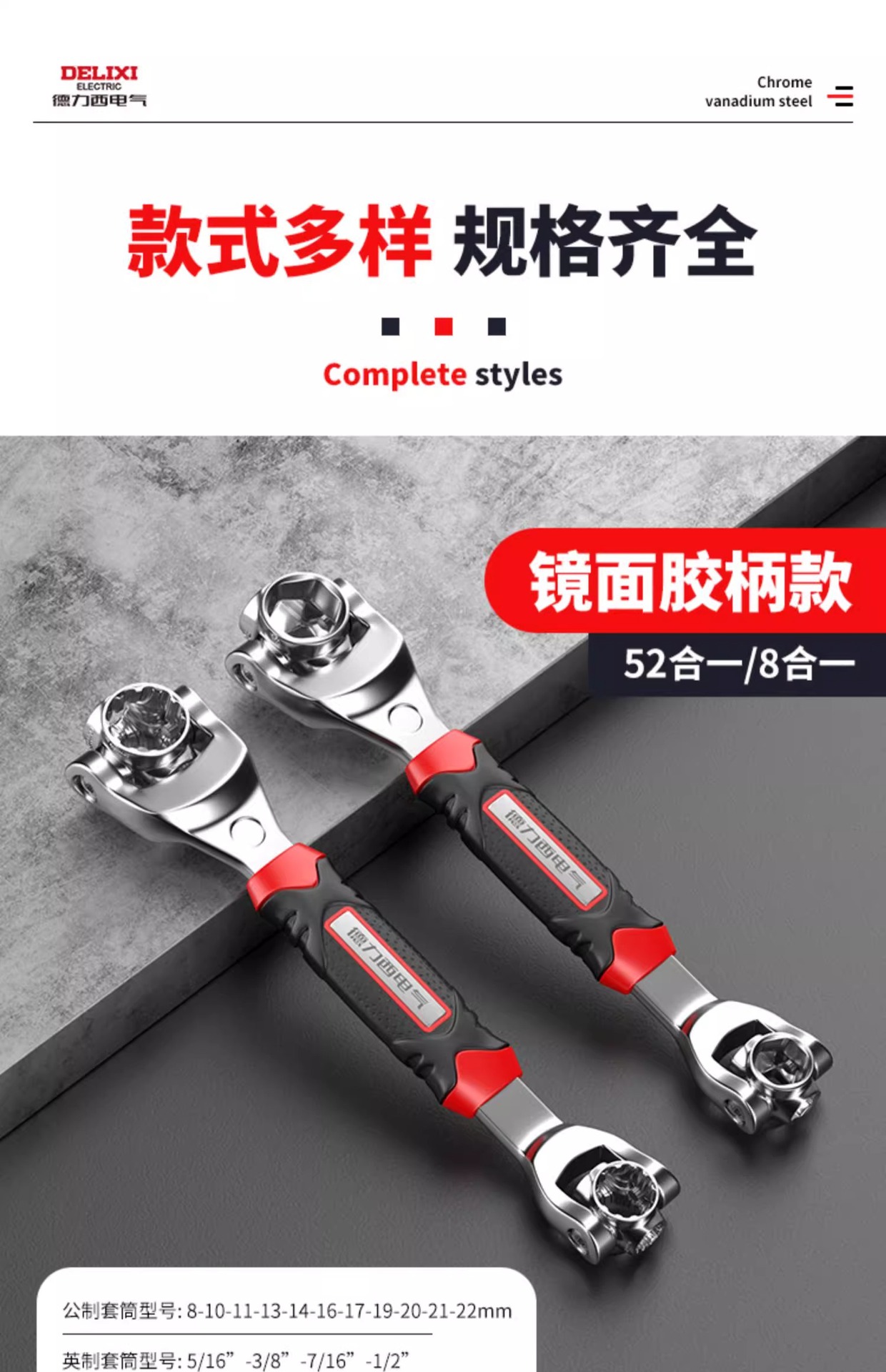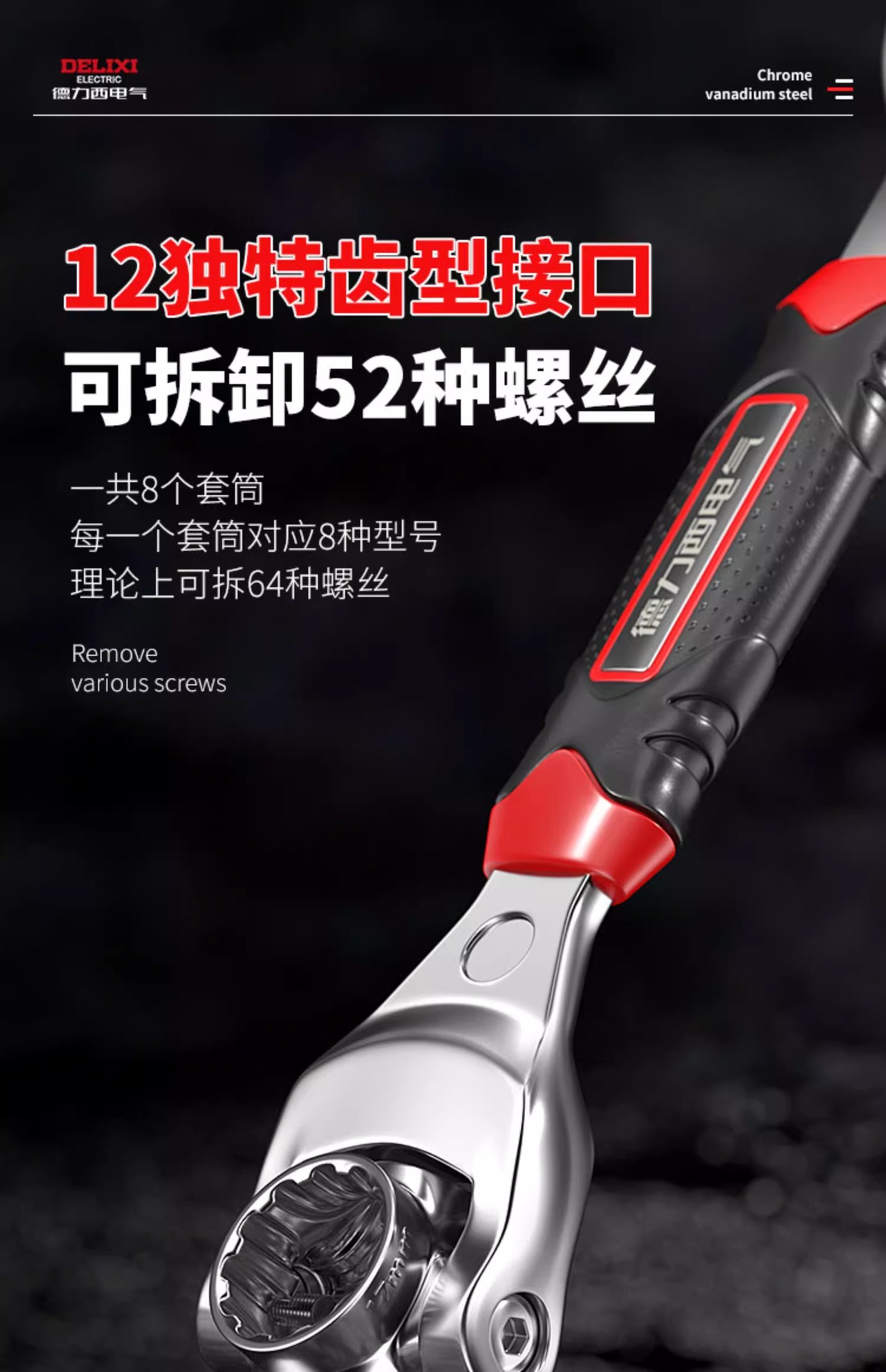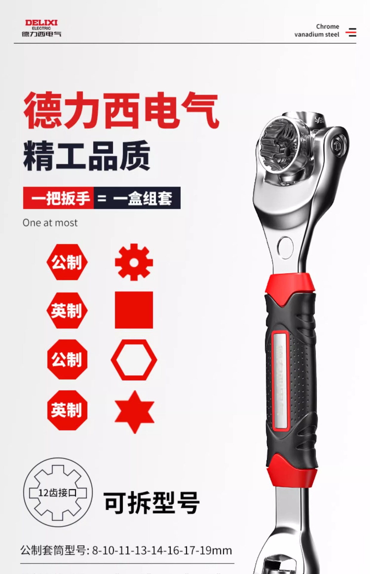 Delixi 전기 소켓 렌치 8-19-22 육각 Torx 52 하나의 가정용 도구 유니버설 조정 가능한 렌치