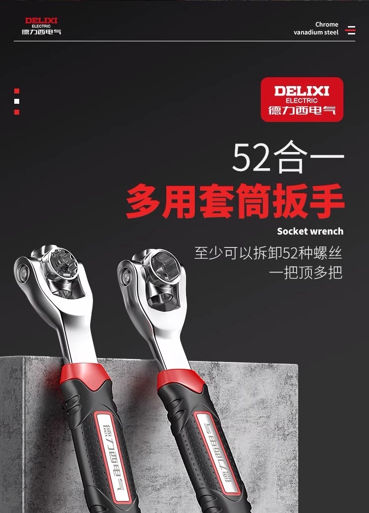 Delixi 전기 소켓 렌치 8-19-22 육각 Torx 52 하나의 가정용 도구 유니버설 조정 가능한 렌치스토어 가기