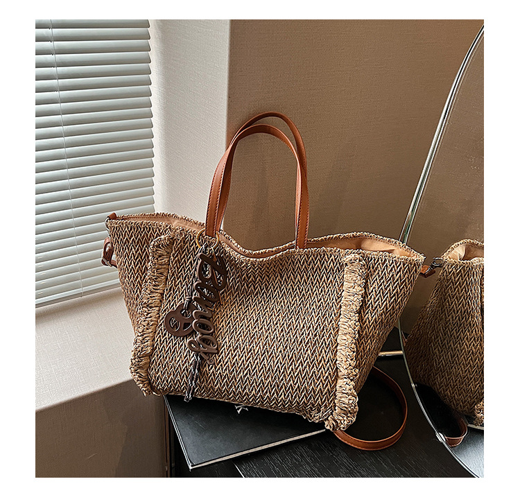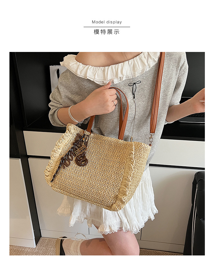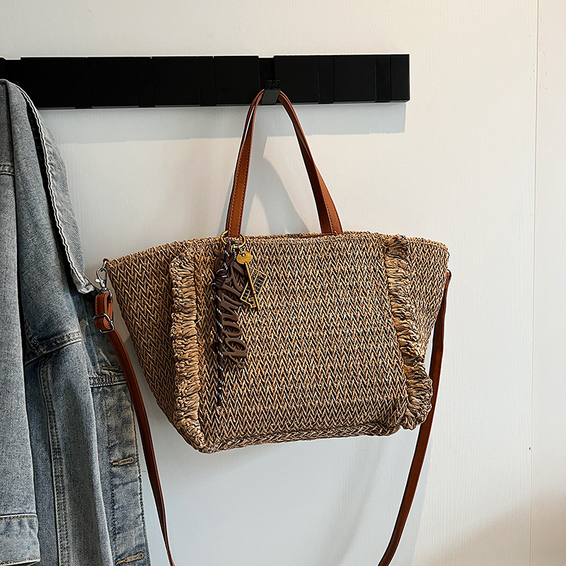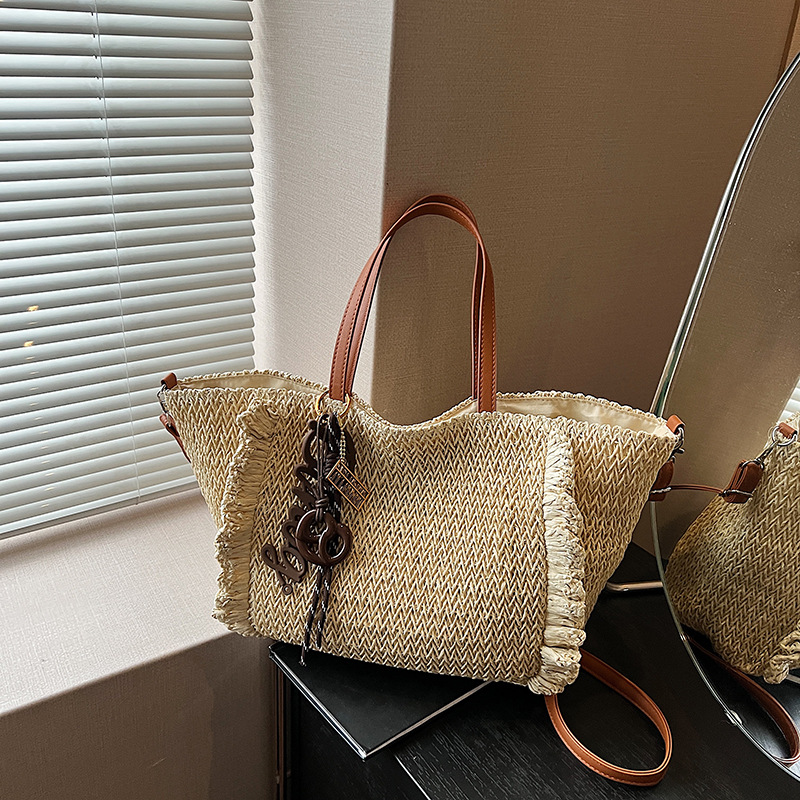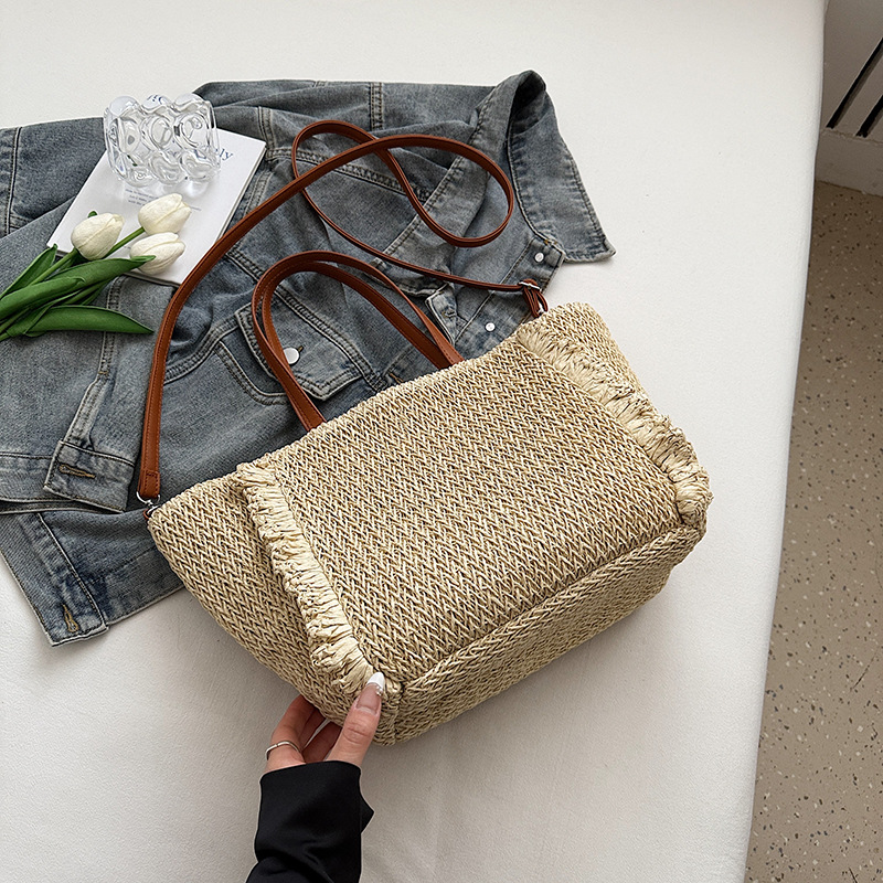 여름 대용량 휴대용 밀짚 가방 여성 가방 2025 새로운 간단한 짠 가방 크로스 바디 야채 바구니 가방