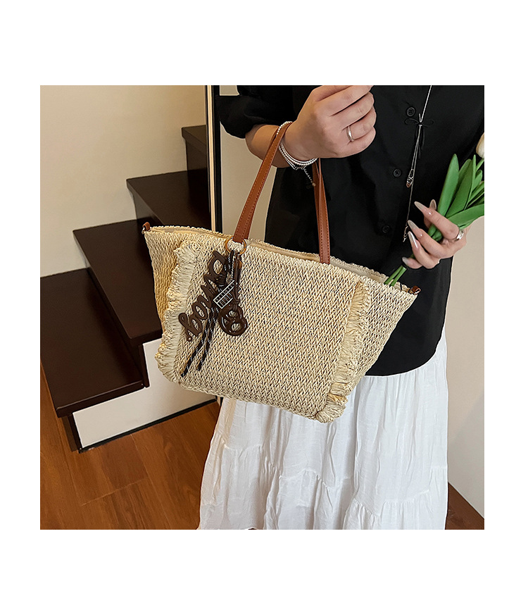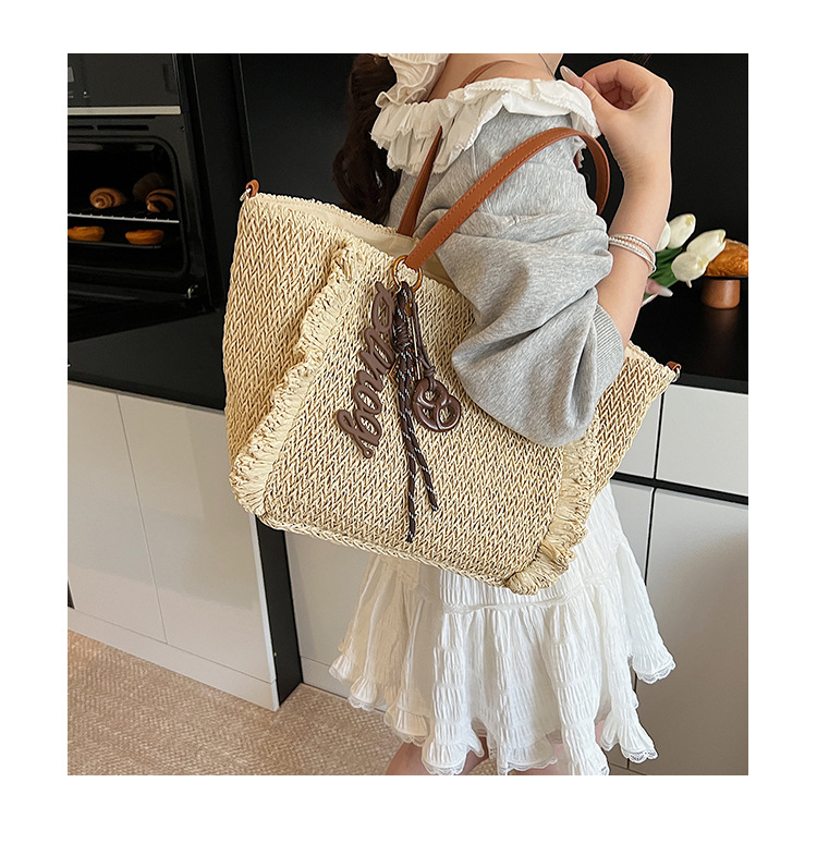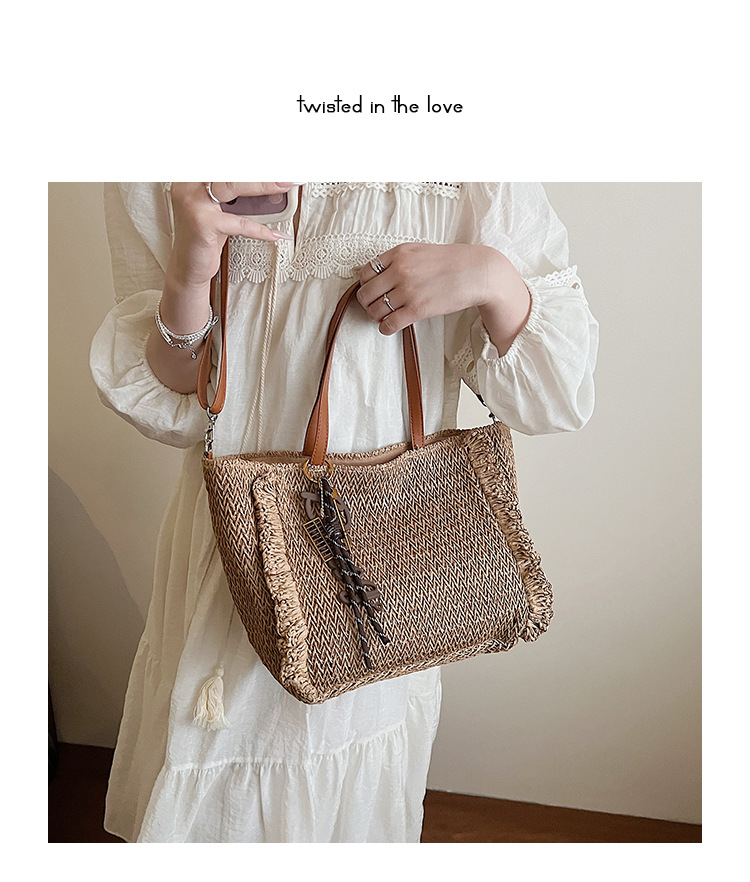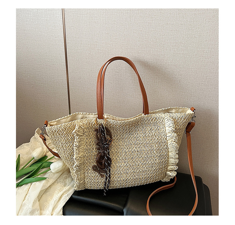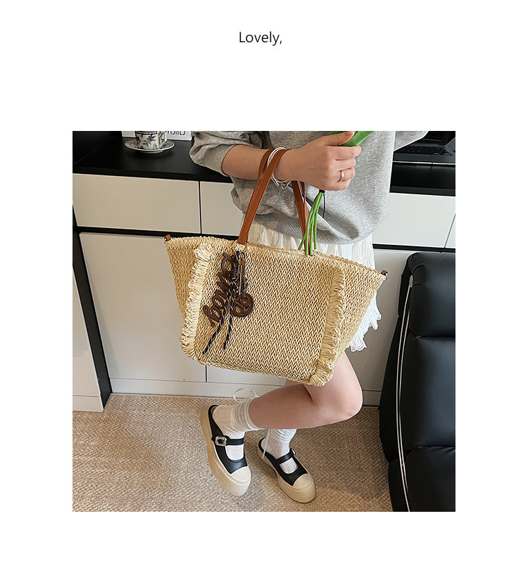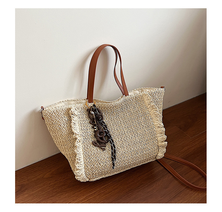 여름 대용량 휴대용 밀짚 가방 여성 가방 2025 새로운 간단한 짠 가방 크로스 바디 야채 바구니 가방