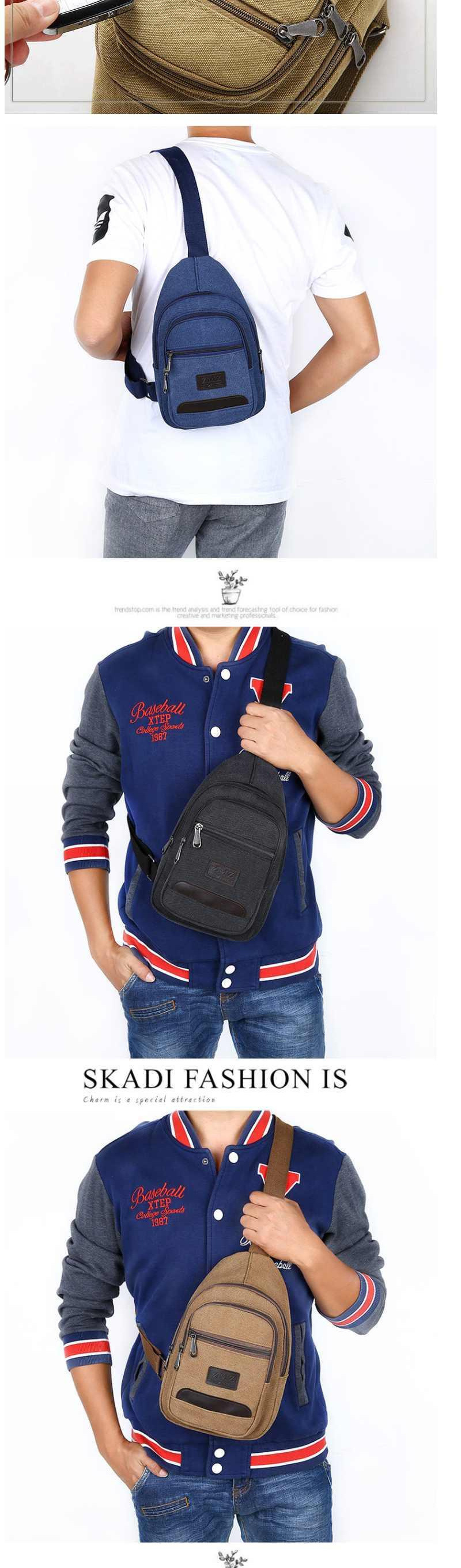가슴 가방 캔버스 남자 가슴 가방 한국 스타일 남자 가방 캐주얼 작은 배낭 어깨 가방 다기능 스포츠 크로스 바디 백 트렌디스토어 가기