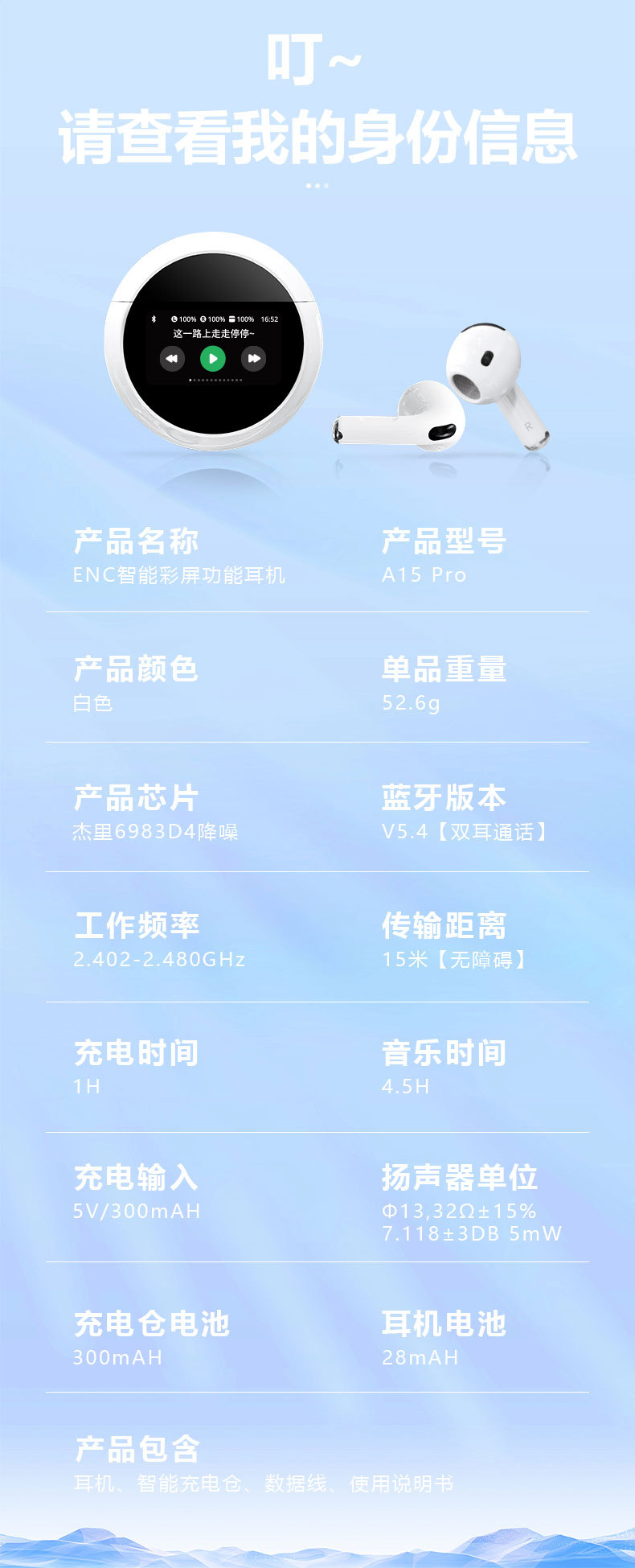 2025 새로운 개인 모델 A15pro 컬러 스크린 블루투스 헤드셋 E11ANC+ENC 이중 소음 감소 무선 블루투스 헤드셋스토어 가기