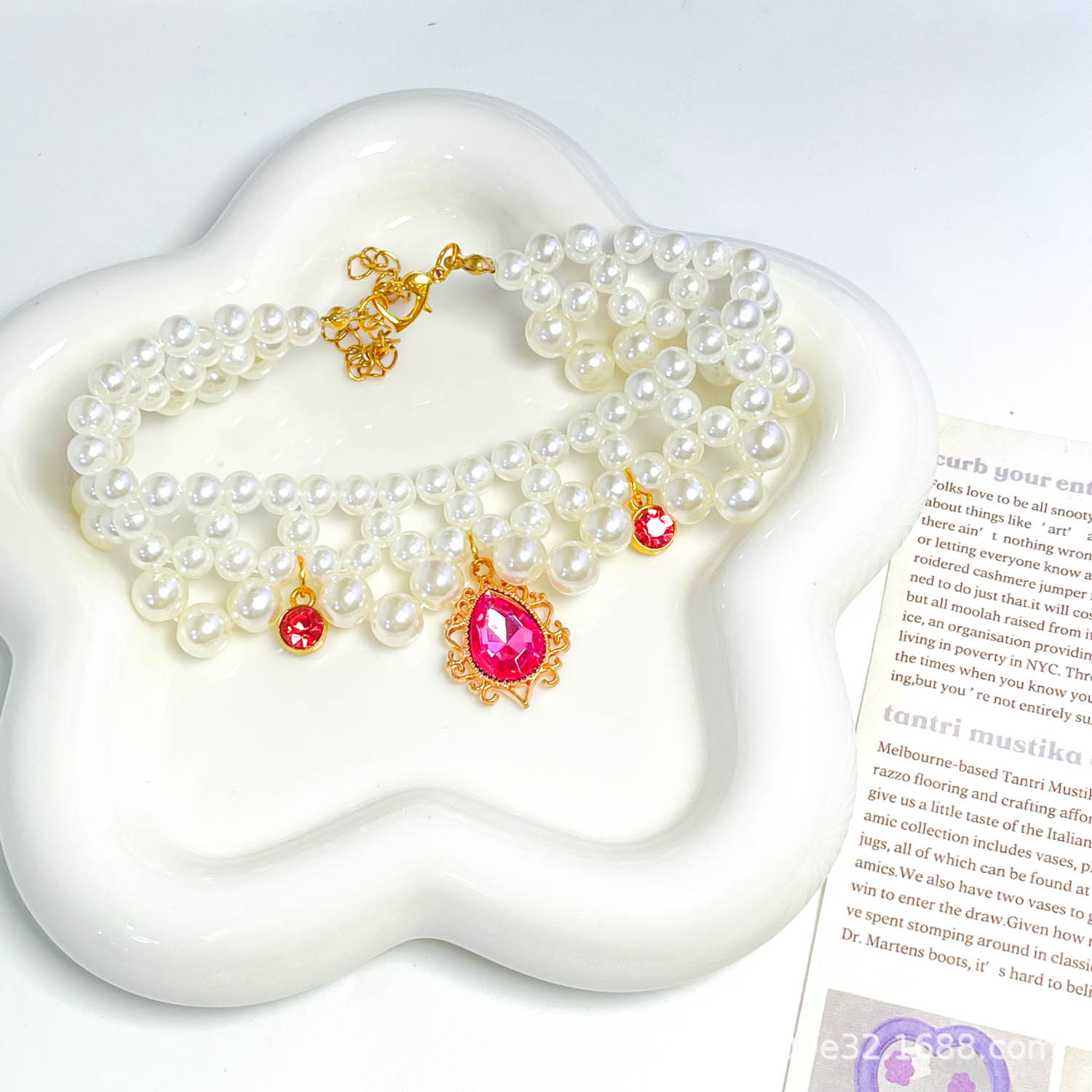 애완 동물 용품 고양이와 개 사교계 귀족 진주 목걸이 수제 애완 동물 패션 달콤하고 귀여운 액세서리 국경스토어 가기