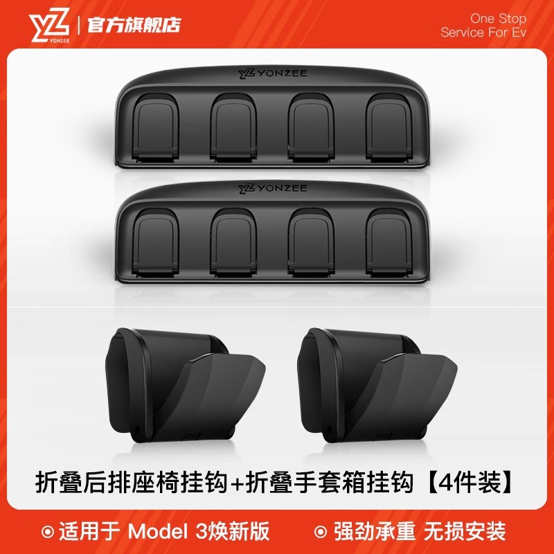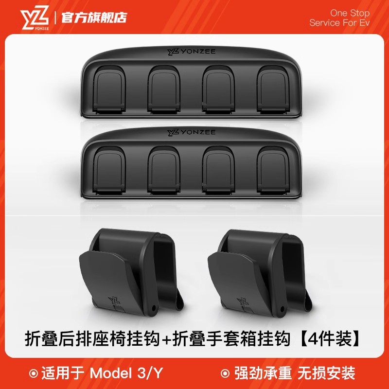 • 모델 Y/3 뒷좌석 접이식 후크 + 글로브 박스 접이식 후크 리뉴얼 버전 [4종 세트]