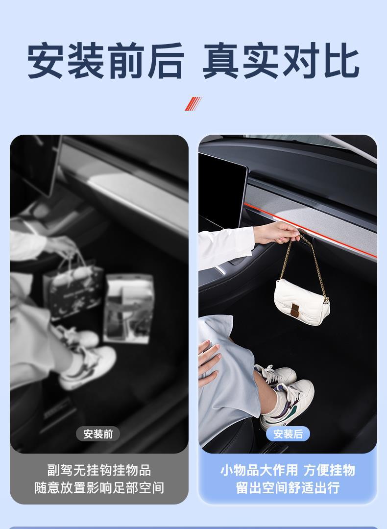 • 모델3 뒷좌석 접이식 후크 + 글로브박스 일체형 후크 리뉴얼 버전 [4종세트-티타늄합금모델]