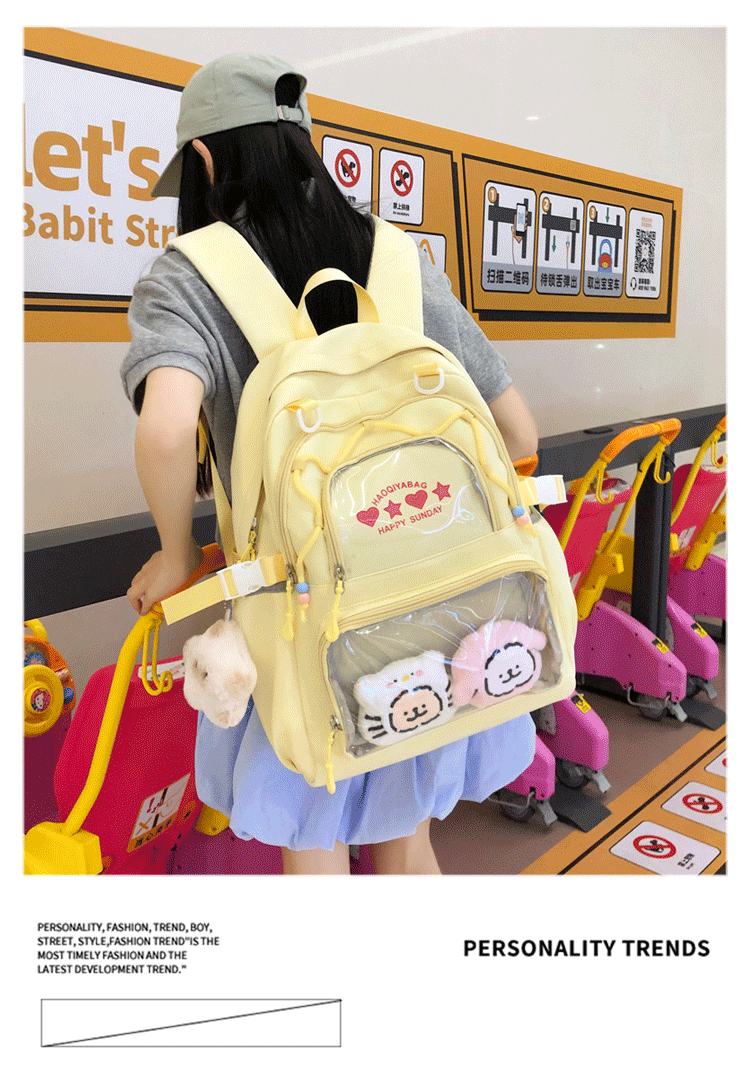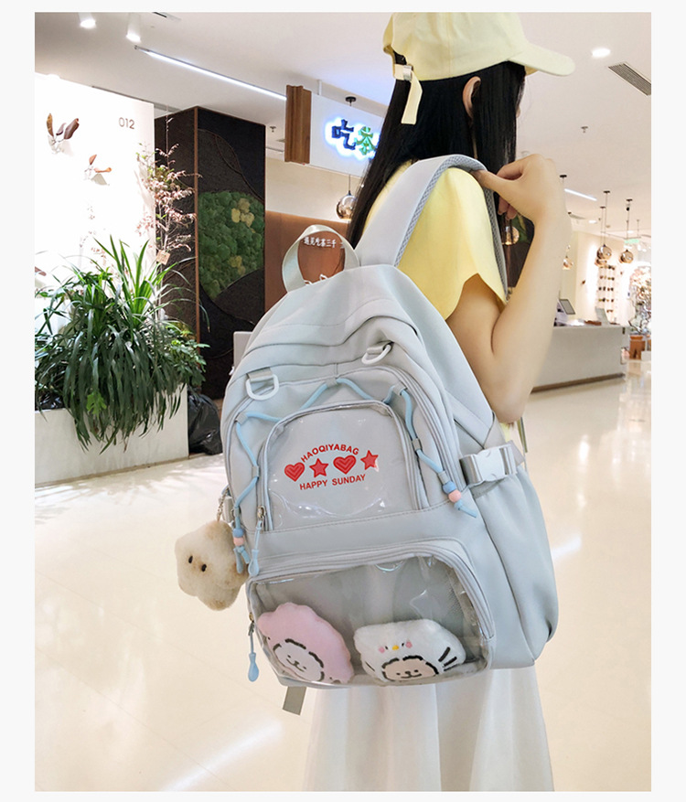여중학생을위한 2 차원 스쿨 백 초등학교 학생을위한 고색 가치 도파민 투명 통증 가방 대용량 일본 배낭스토어 가기