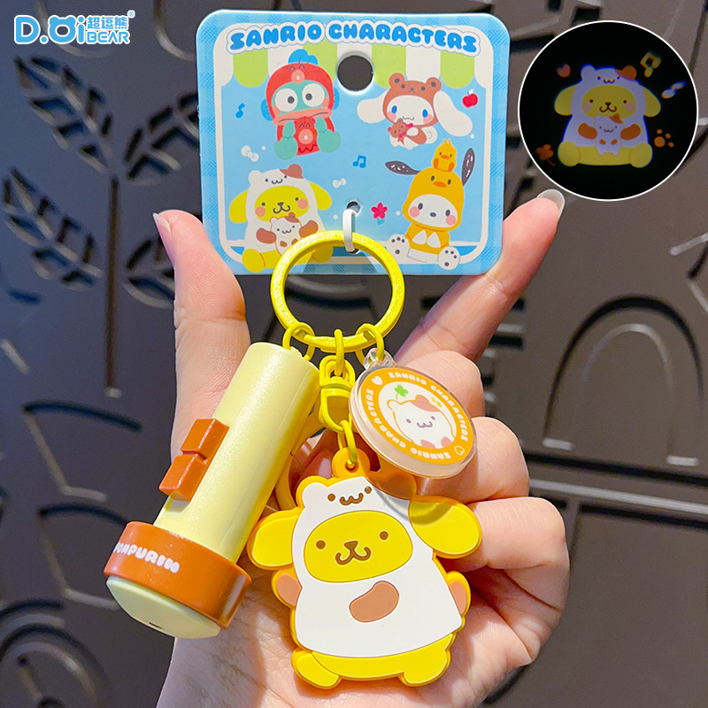 정품 Sanrio 프로젝션 작은 손전등 키 체인 크리 에이 티브 감압 작은 장난감 가방 작은 펜던트 자동차 열쇠 고리스토어 가기