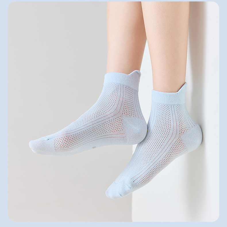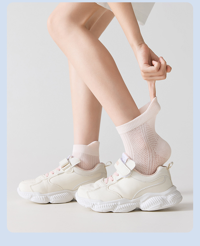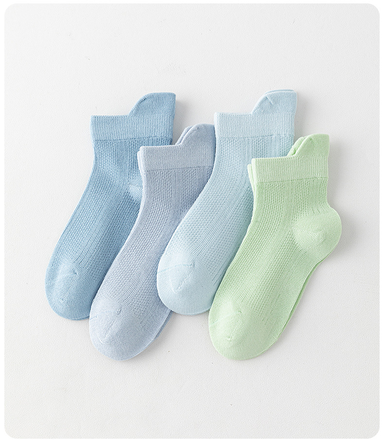 어린이 양말 여름 얇은 뼈없는 메쉬 양말 학생 귀 통기성 스포츠 양말 소년과 소녀 솔리드 컬러 양말