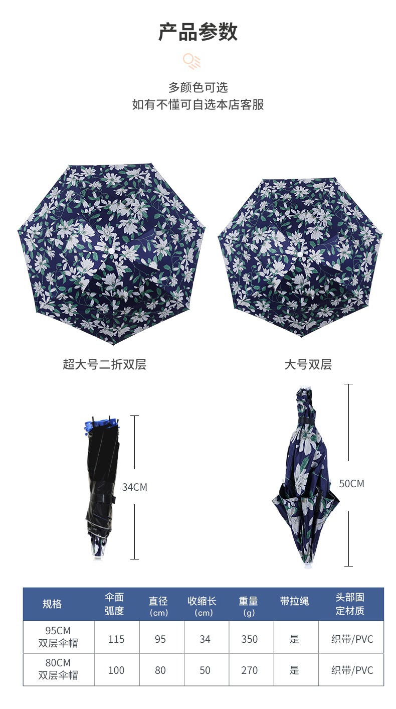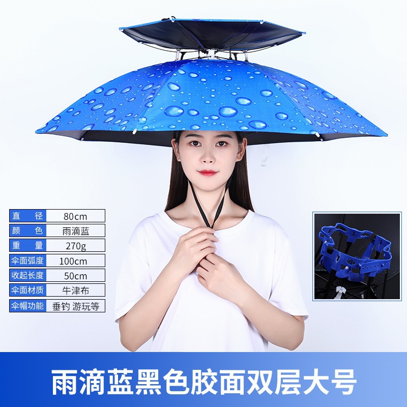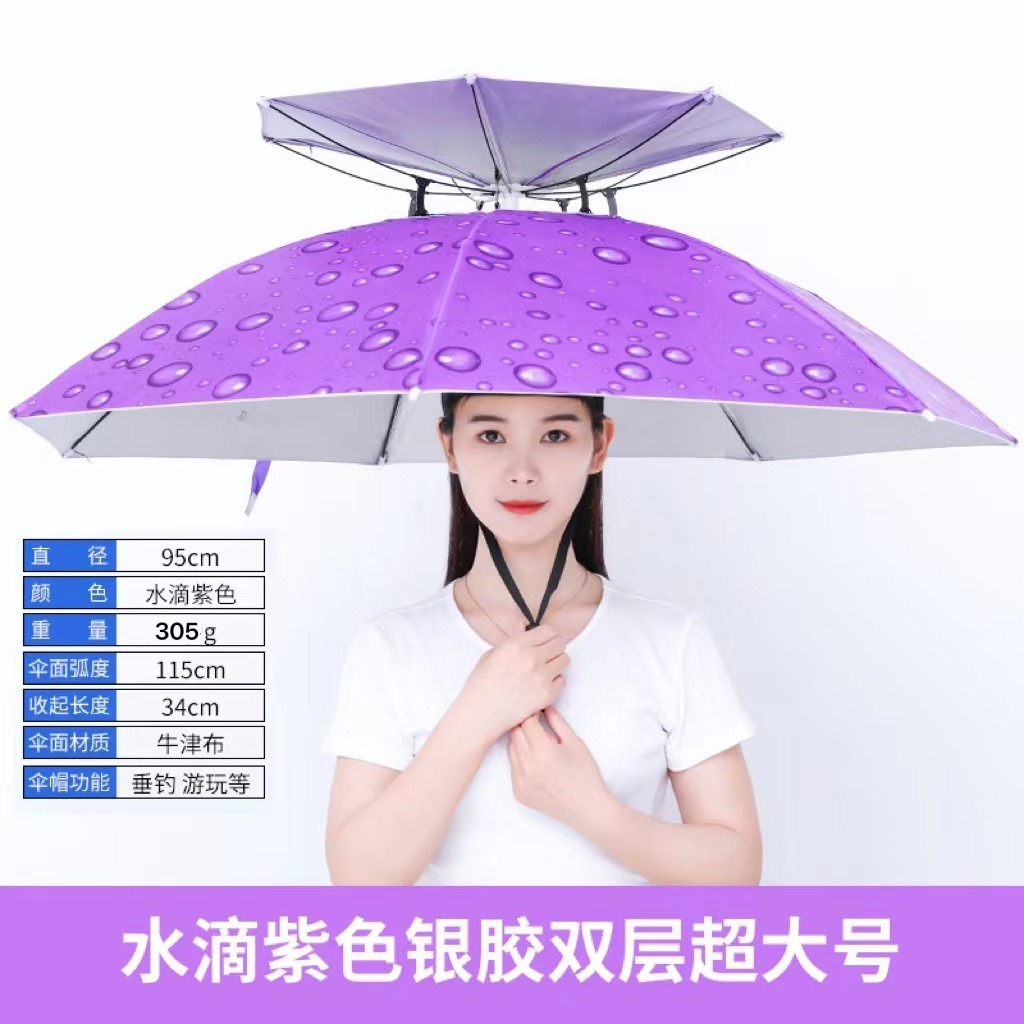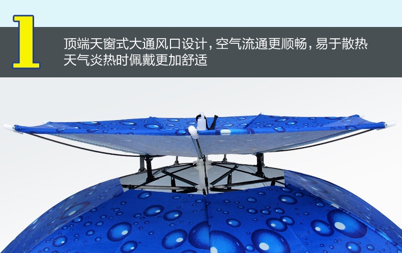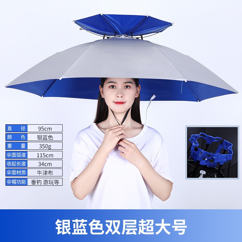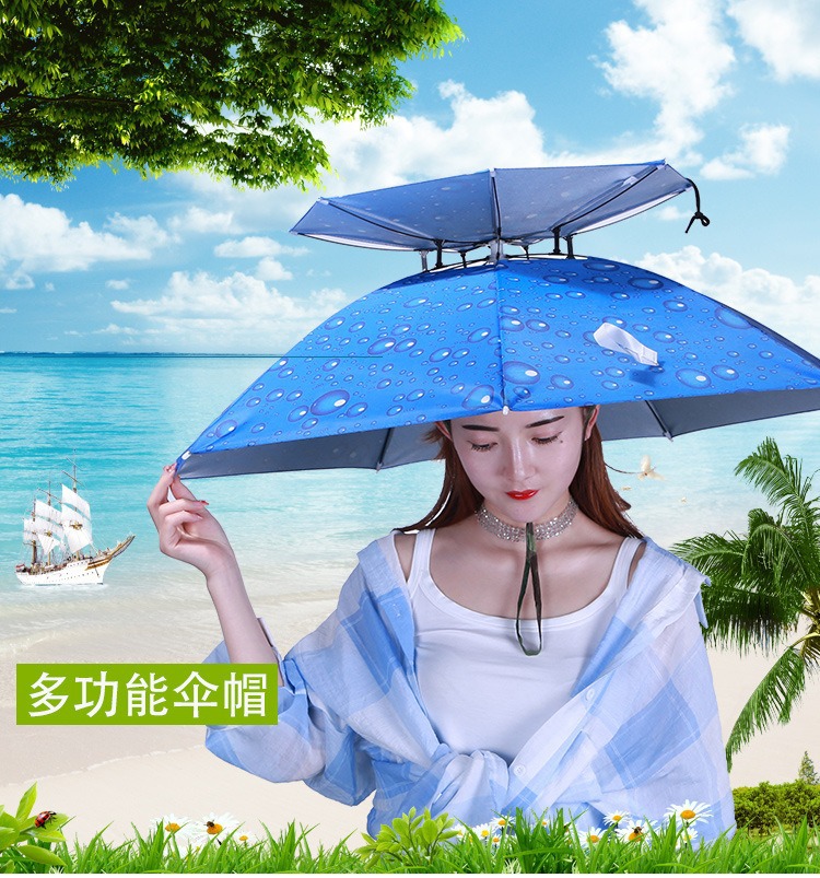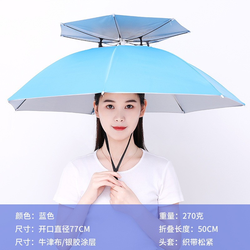 태양 방비 오버 헤드 선 스크린 야외 대형 접는 우산 모자 게으른 우산 모자 더블 레이어 헤드 장착 우산