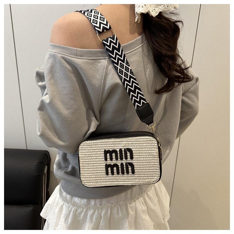 2025 봄 신작 카메라 가방 와이드 숄더 스트랩 레터 캐주얼 스몰 스퀘어 백 외국 스타일 심플 통근 숄더 크로스백