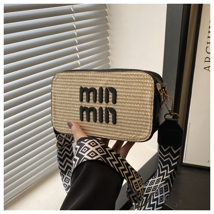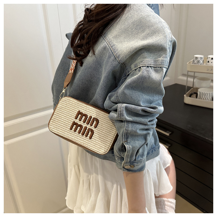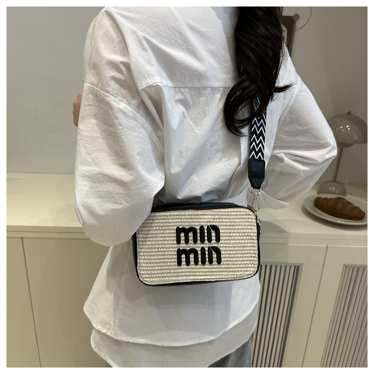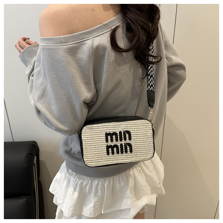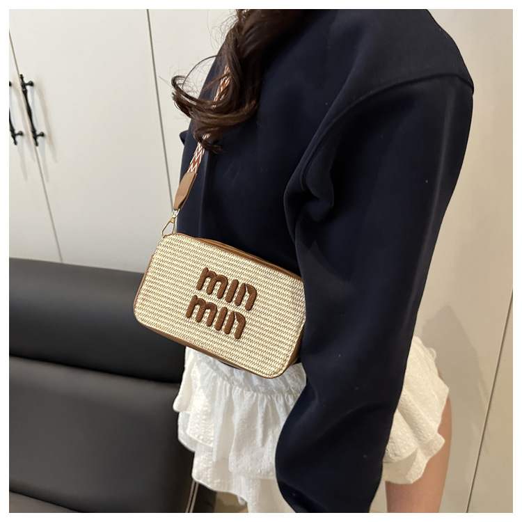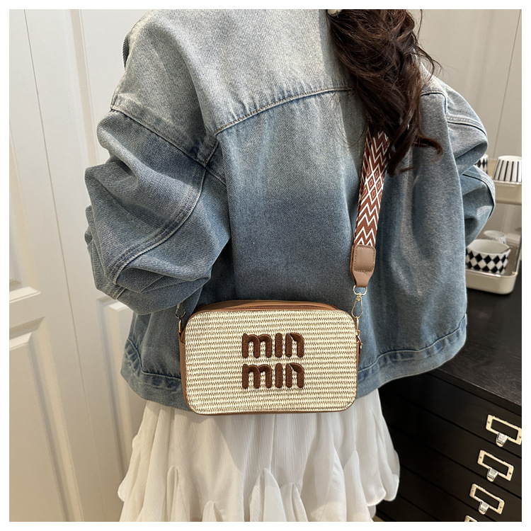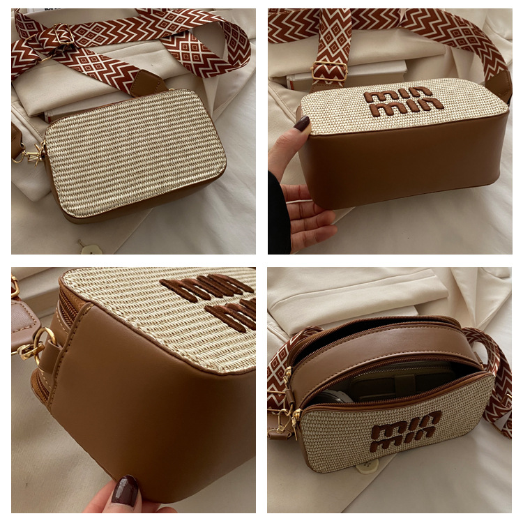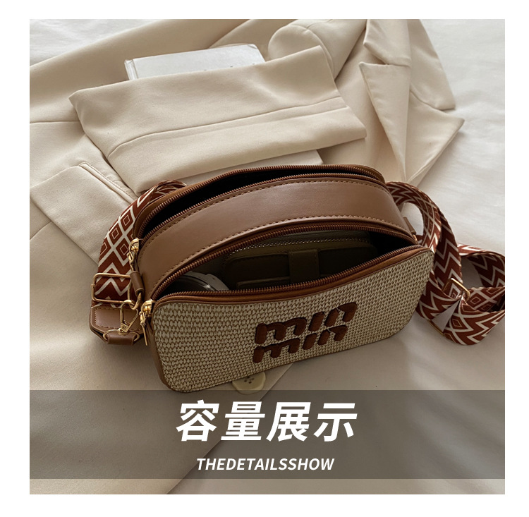 2025 봄 신작 카메라 가방 와이드 숄더 스트랩 레터 캐주얼 스몰 스퀘어 백 외국 스타일 심플 통근 숄더 크로스백스토어 가기