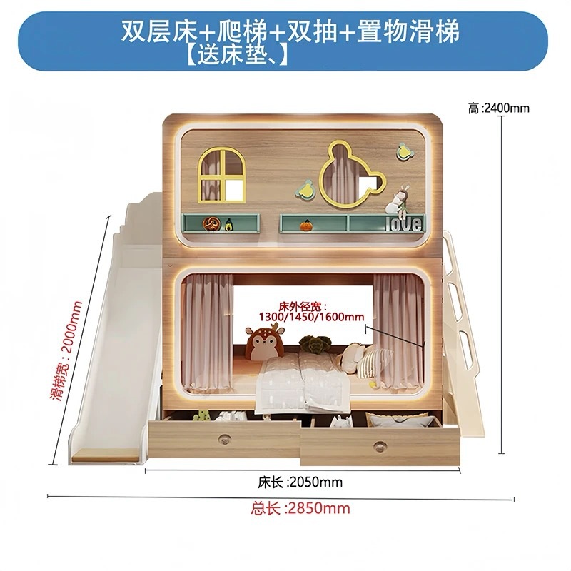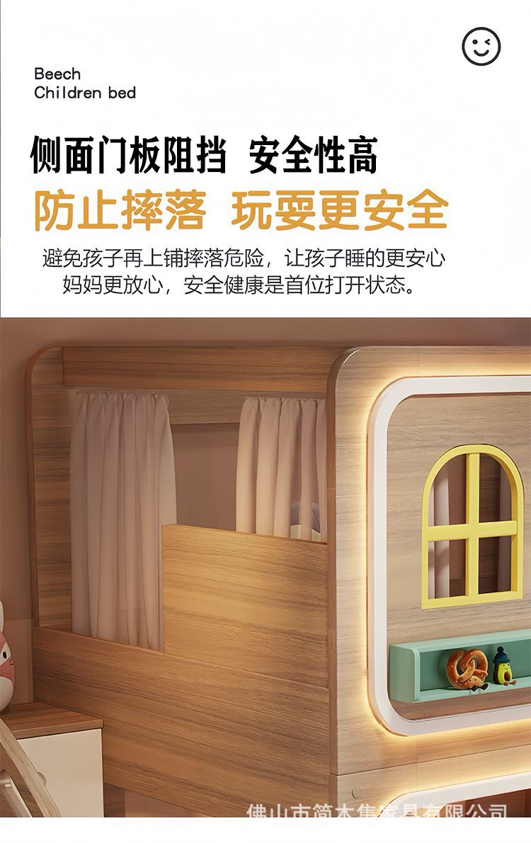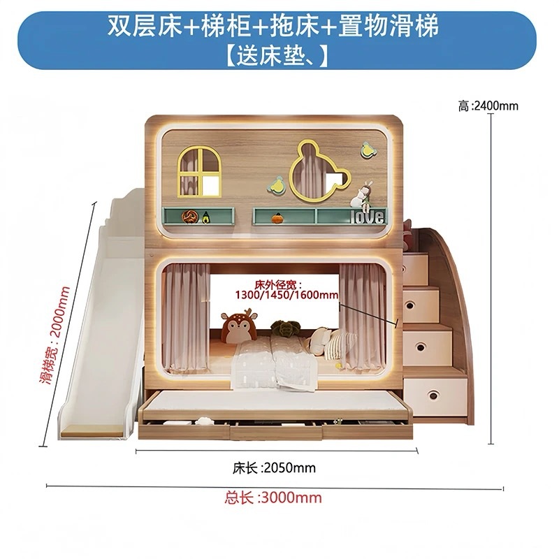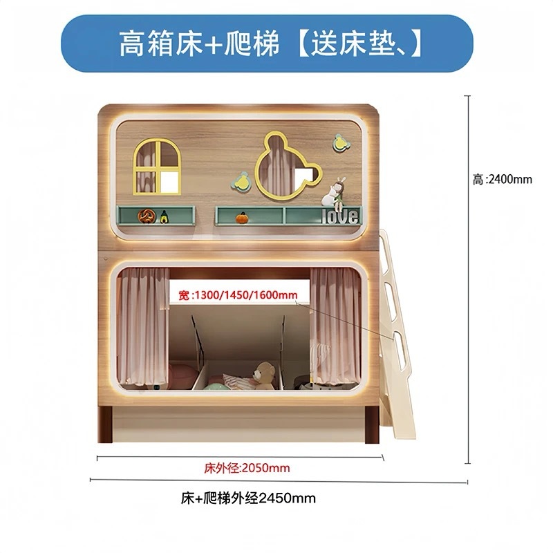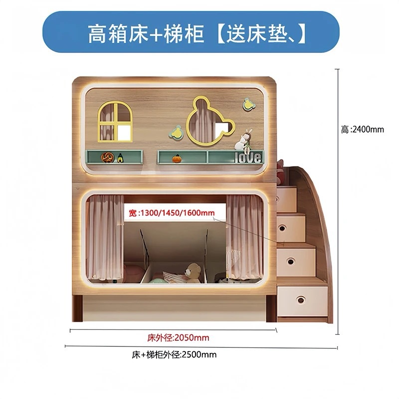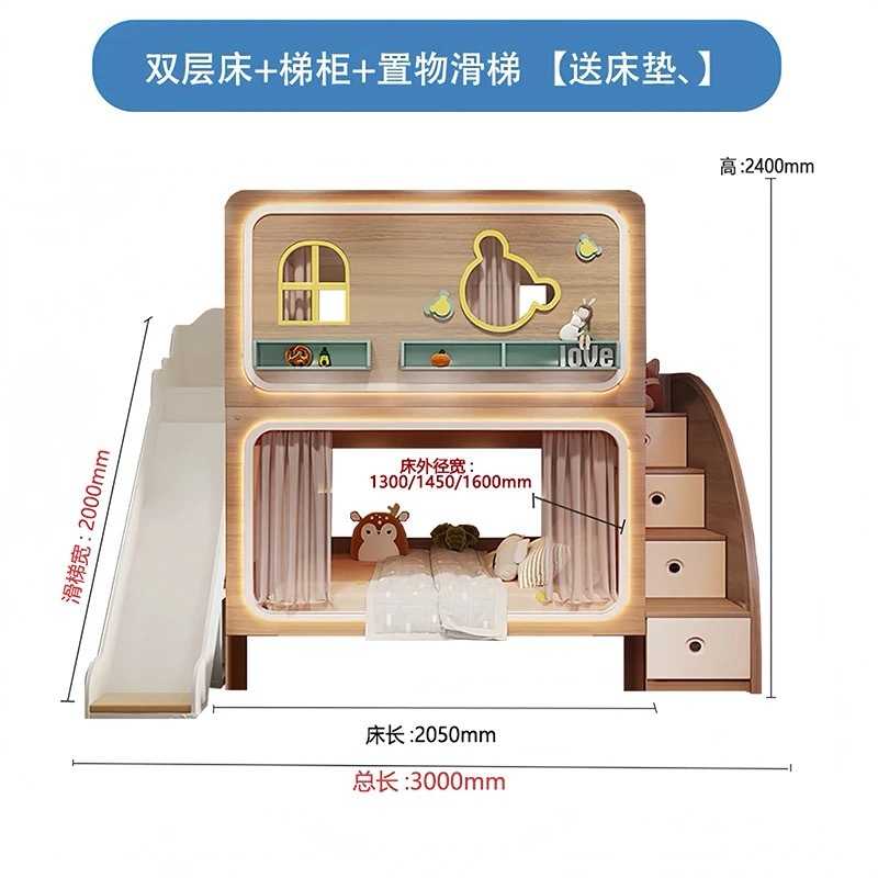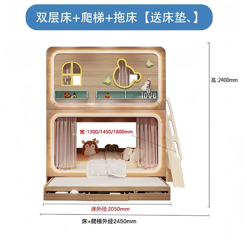 나무색 어린이 이층침대, 높낮이침대, 사다리가 있는 심플하고 모던한 캐비닛, 어머니침대 슬라이드, 이층침대 조합침대