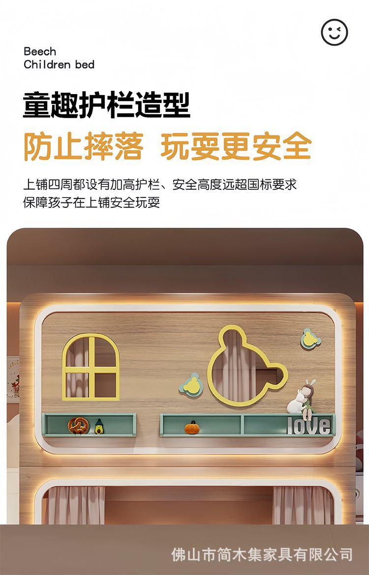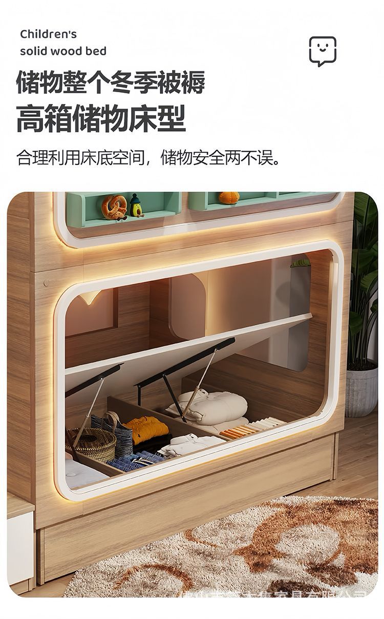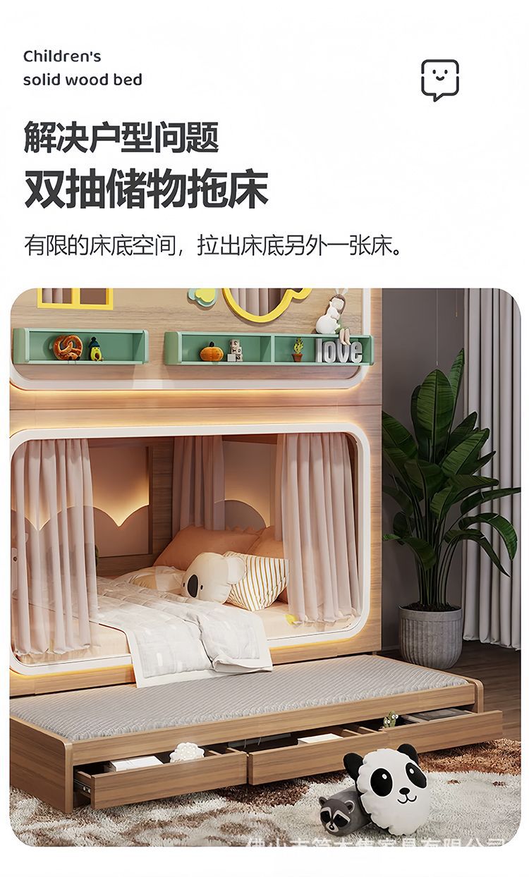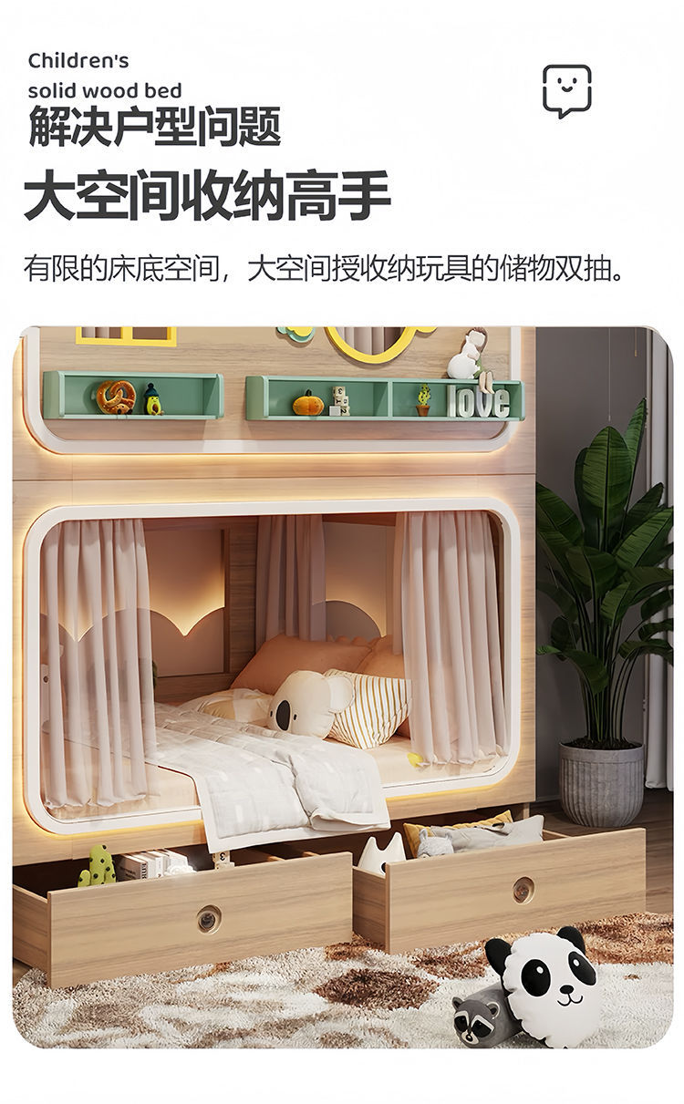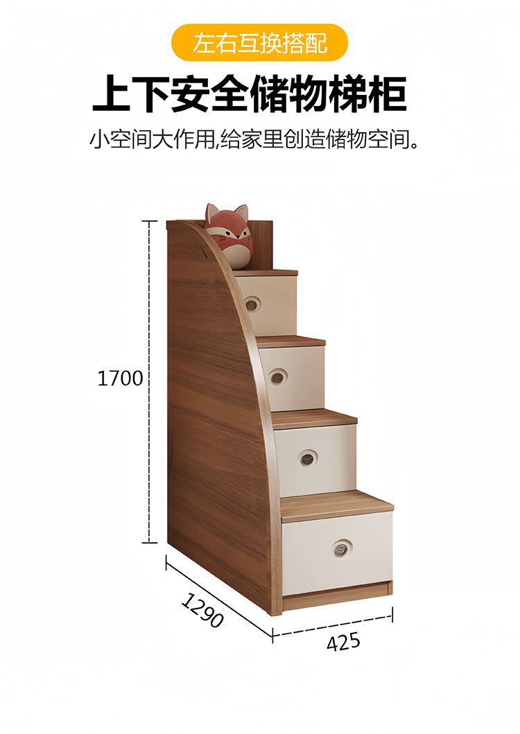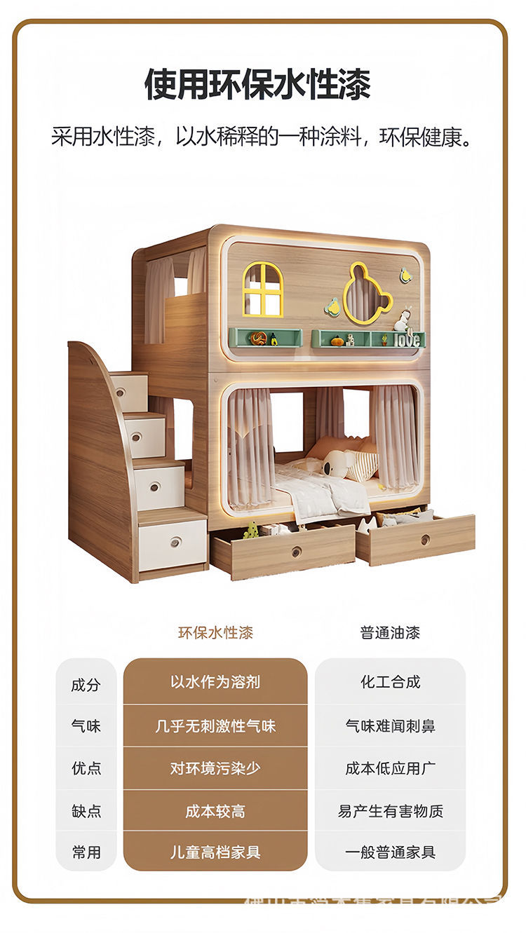 나무색 어린이 이층침대, 높낮이침대, 사다리가 있는 심플하고 모던한 캐비닛, 어머니침대 슬라이드, 이층침대 조합침대