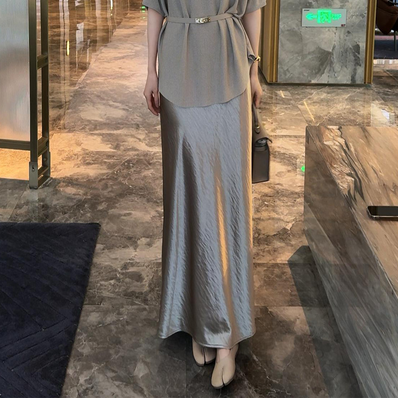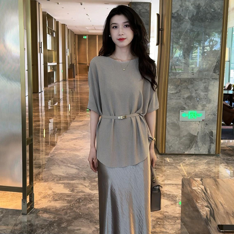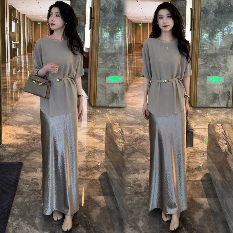 여성을위한 패션 정장 스커트 2025 여름 새로운 유행 느슨한 얼음 실크 탑 슬릿 스커트 투피스 세트스토어 가기
