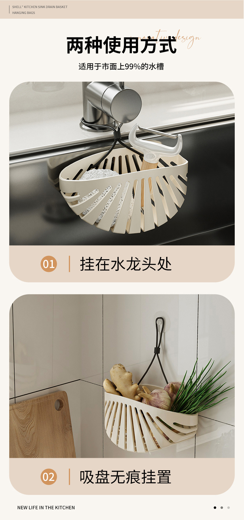 • 贝壳形带挂绳厨房水槽沥水挂袋 海绵沥水收纳篮