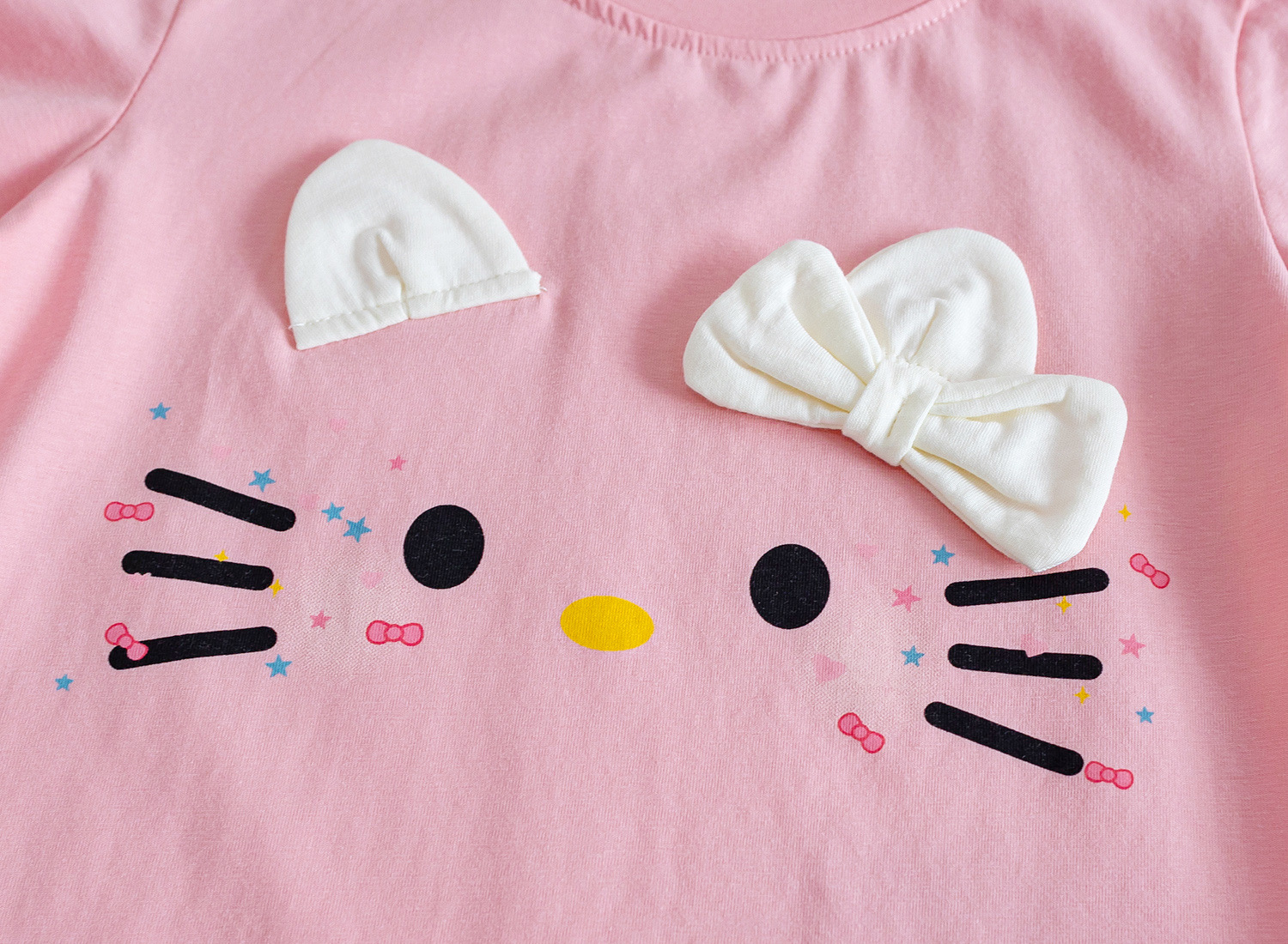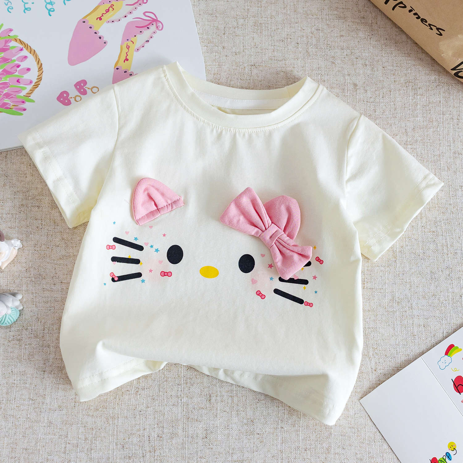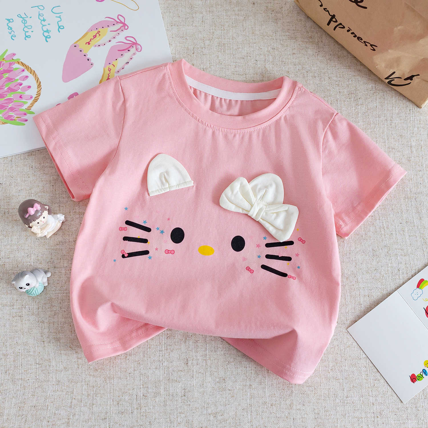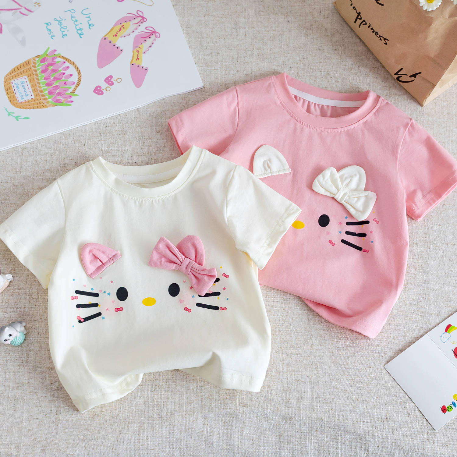 여자 반팔 티셔츠 2025 새로운 여름 어린이 한국어 스타일 달콤한 고양이 탑 아기 소녀 유행 바닥 셔츠스토어 가기