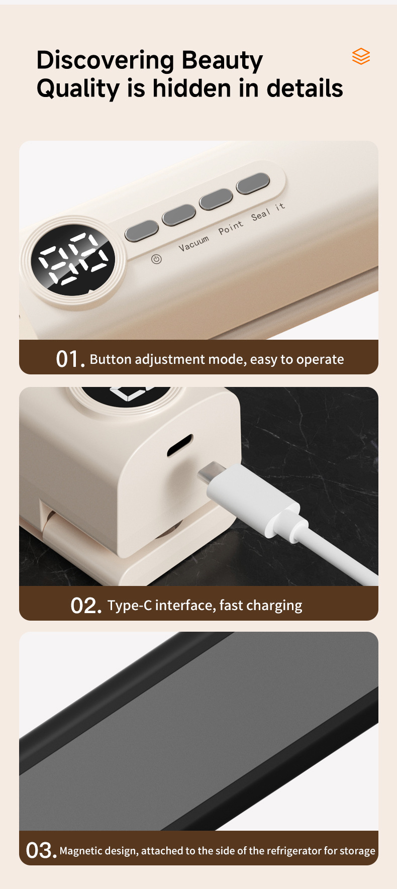 功能介绍:无线充电 真空封口 单封口 外抽等