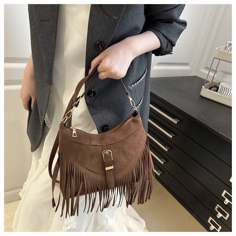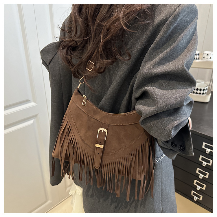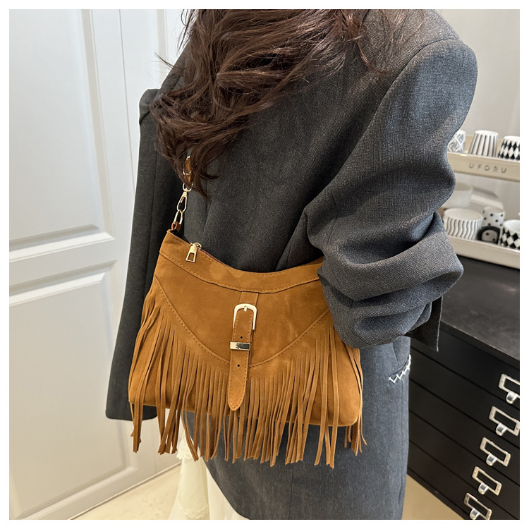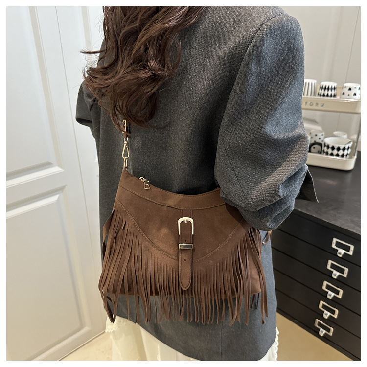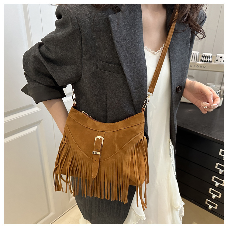보헤미안 레트로 태슬 백 여자 2025 새로운 스타일 올 매치 싱글 숄더 민족 스타일 여행 크로스 바디 백